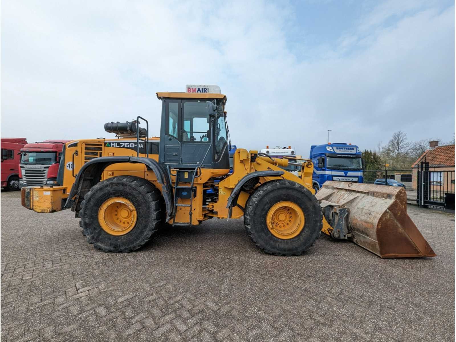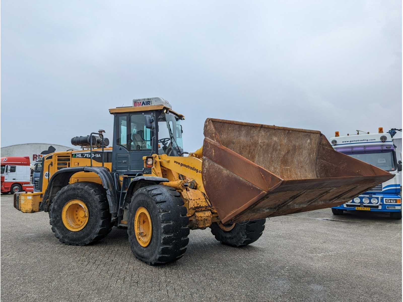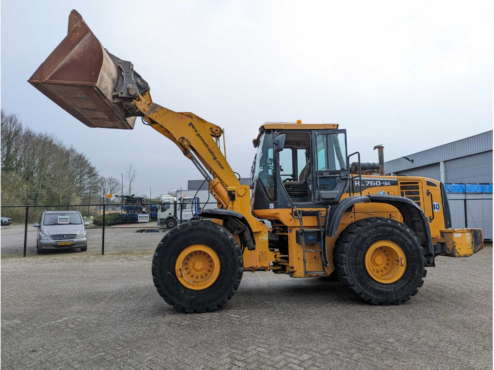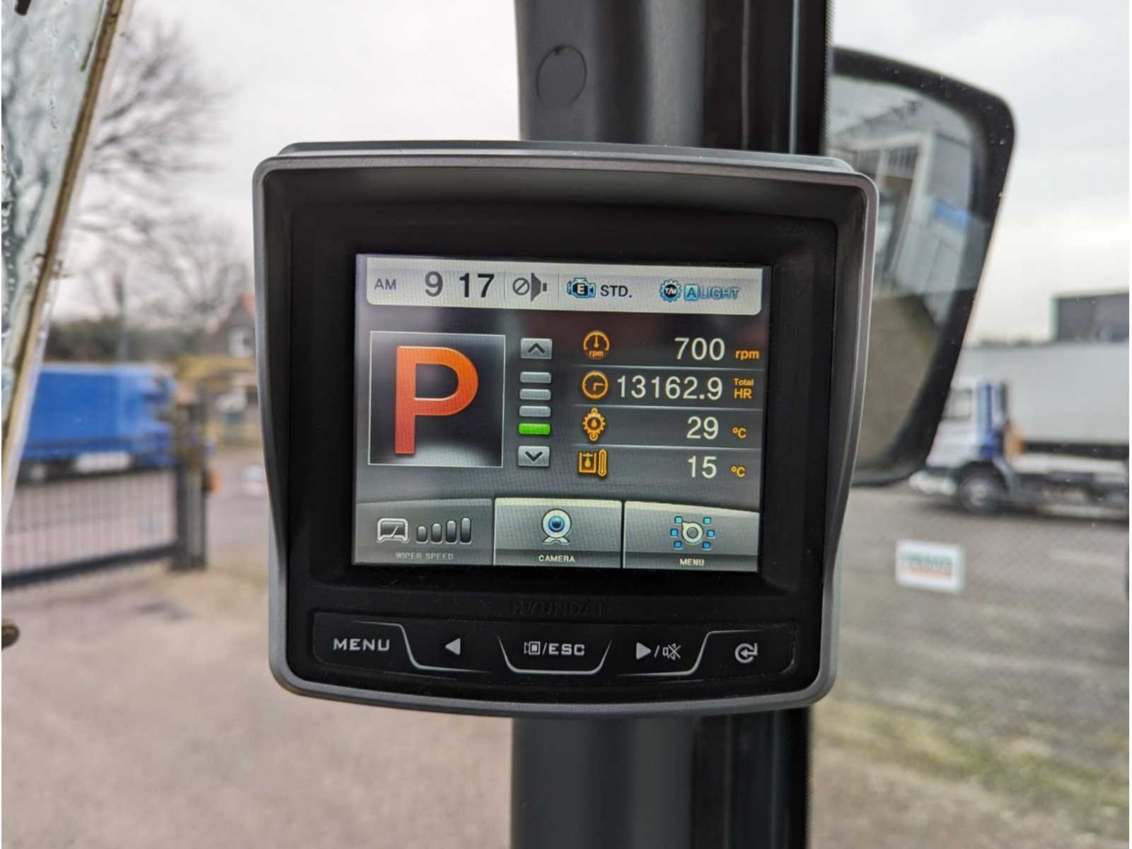 Voorzien van “Cummins” QSB6.7 dieselmotor, achteruitrij camera, radio / cd-speler, smart key systeem, Sy-klone engine prefilters, “BMair” filter overdruk systeem, extra hydrauliek functie en hydraulisch snelwissel systeem Merk: Hyundai Type: HL760-9A Bouwjaar: 2014 Serienummer: HHKHLL04CD0000177 Merk motor: Cummins Kenteken: TST-40-N Motorvermogen (kW): 166kW Brandstof: diesel Bedrijfsgewicht: 18350kg Graafbak afm. l: 2800mm Graafbak afm. b: 1160mm Graafbak afm. h: 1300mm Bandenmaat: 23.5R25 Cabine: true Afgelezen urenstand: 13162