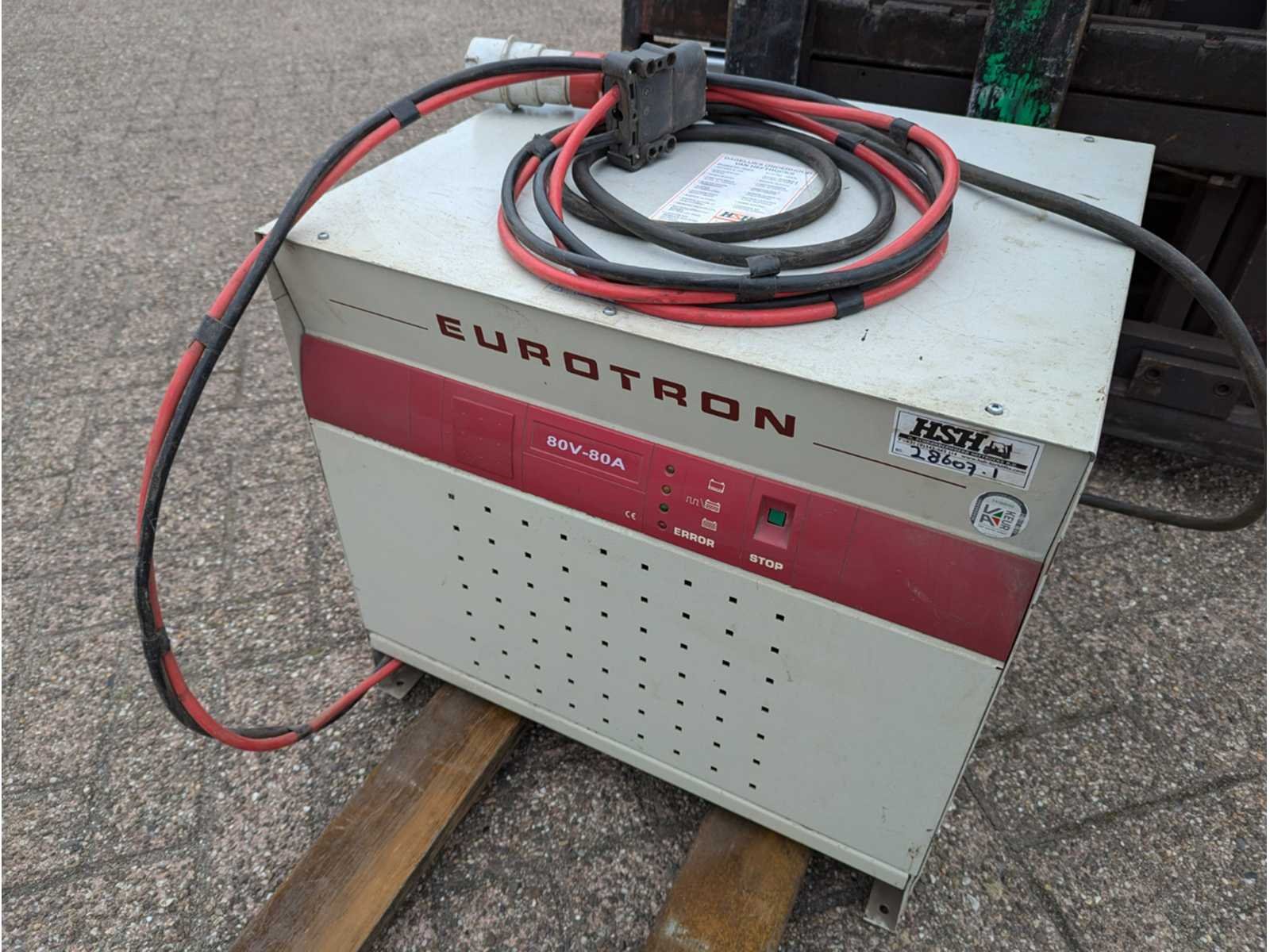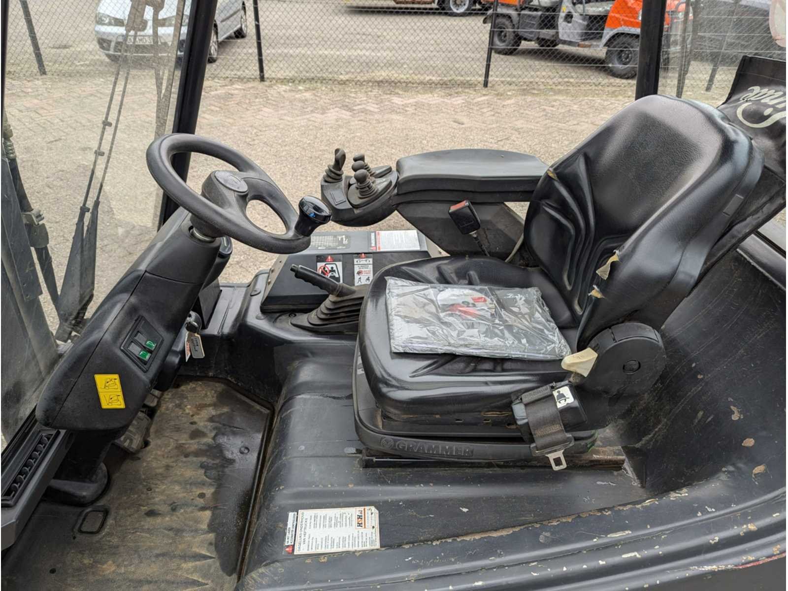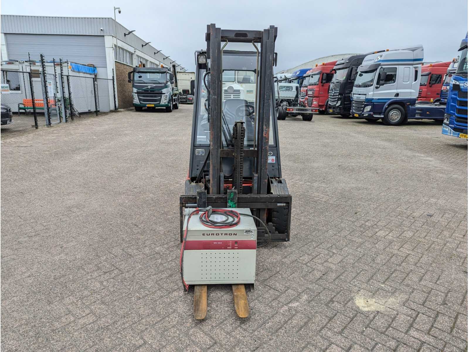 Voorzien van “Eurotron” 80V-80A oplader en werklampen Merk: Linde Type: E30 Bouwjaar: 2008 Serienummer: G1X336W01336 Brandstof: Elektrisch Mast: Duplex Soort band: Volrubber banden Aantal wielen: 4 Afgelezen urenstand: 4058 Accu lader: true Free-lift: true Side-shift: true Eigen gewicht: 3420kg Hefvermogen: 3000kg Hefhoogte: 4500mm Vol rubber banden: true