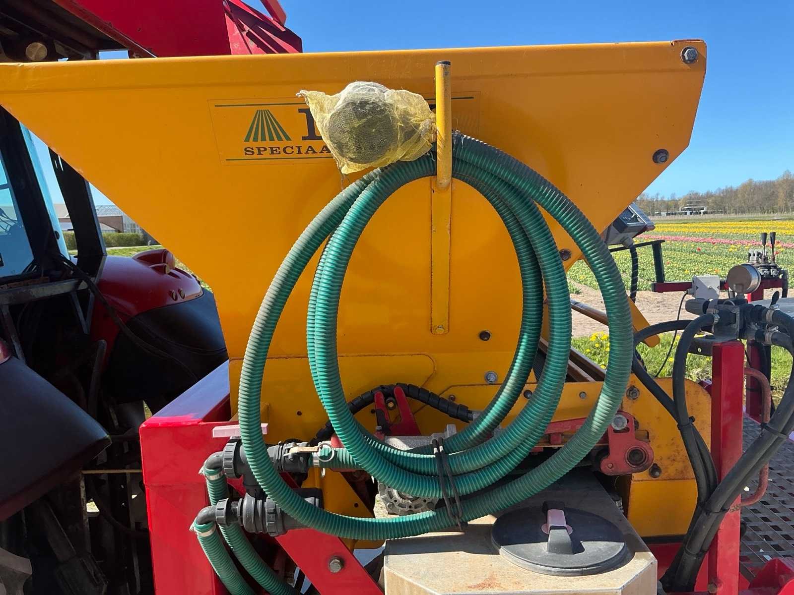 Bestaande uit: ATH dakopbouw met frontlader en vorkenbord, en MH MP 1800 1500 planter uit bouwjaar 2007. Planter voorzien van 5 rijen, zitplaats ten behoeve van bediening, handmatig in hoogte verstelbare schijven en egalisatiebord, hydraulische diepteverstelling door middel van loopwielen, vloeistoftank met spuitdoppen bij de plantelementen. Tractor voorzien van onder andere: 8x frontgewicht, werkverlichting, perkins 4 cilinder dieselmotor, spatbordbediening ten behoeve van hefinrichting, 540/1000 rpm PTO, radio en camerasysteem Merk: Massey Ferguson Type: 5455 Bouwjaar: 2006 Kenteken: TXB-49-D Afgelezen urenstand: 10242 Aantal hydraulische ventielen achter: 4 Bandenmaat voor: 270/80R32 Mitas Bandenmaat achter: 300/95R42 Mitas Frontgewichtenset: true Cabine: true Luchtgeveerde stoel: true Totale afmeting L: 8500mm Totale afmeting Breedte: 2350mm Totale afmeting Hoogte: 3500mm Datum eerste toelating: 2006-06-30