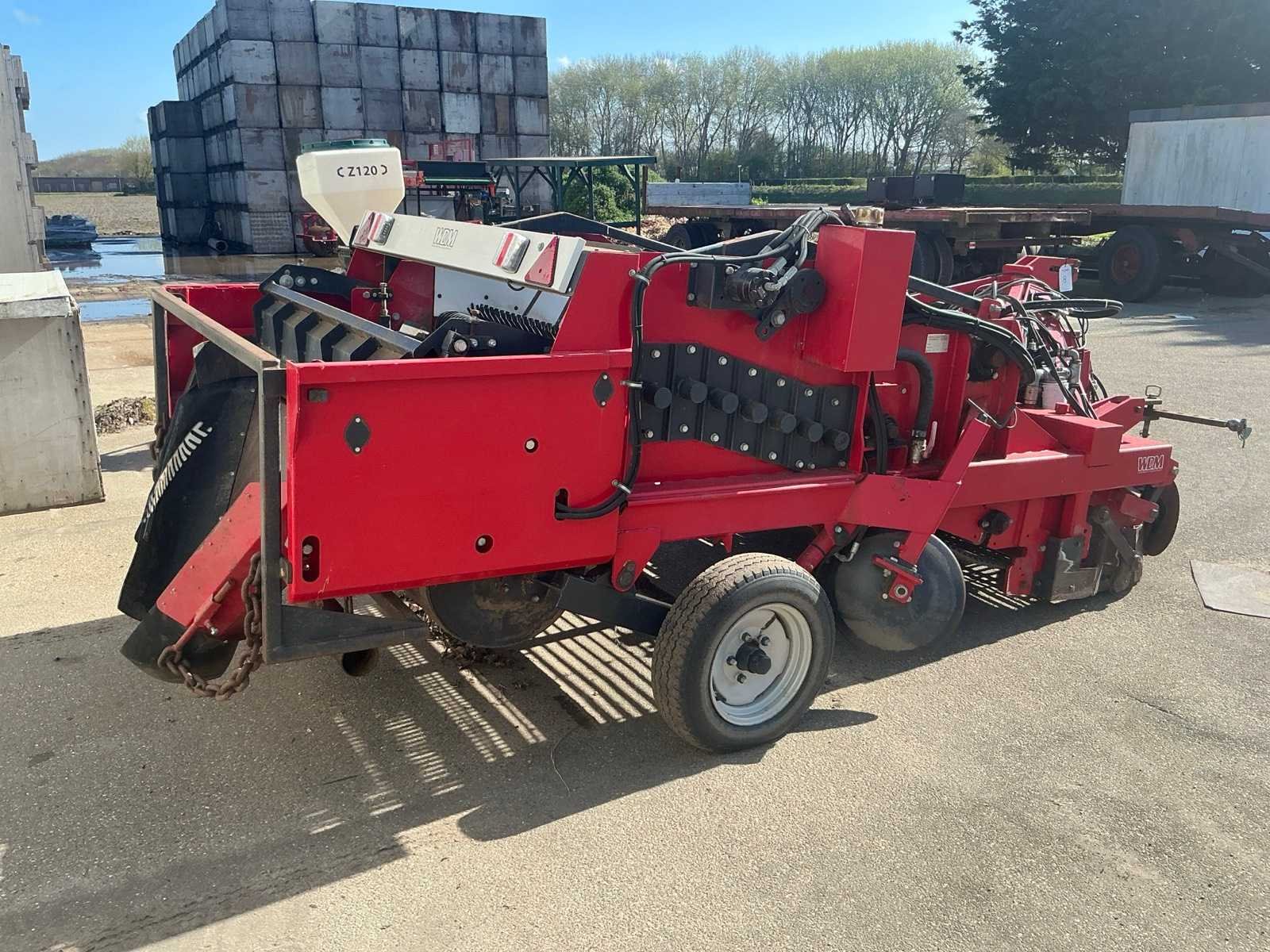 Voorzien van onder andere: Driepunts inrichting, afneembare trekhaak, hydraulisch aangedreven en in hoogte verstekbare schijven, handmatig verstelbare schijven in rijpad, maas spijlen rooimat circa 25mm en kunststof vingerrollen. Merk: WDM Type: DPR Bouwjaar: 2017 Serienummer: 050517 Werkbreedte: 1500mm Totale afmeting L: 5000mm Totale afmeting Breedte: 2200mm Totale afmeting Hoogte: 1600mm