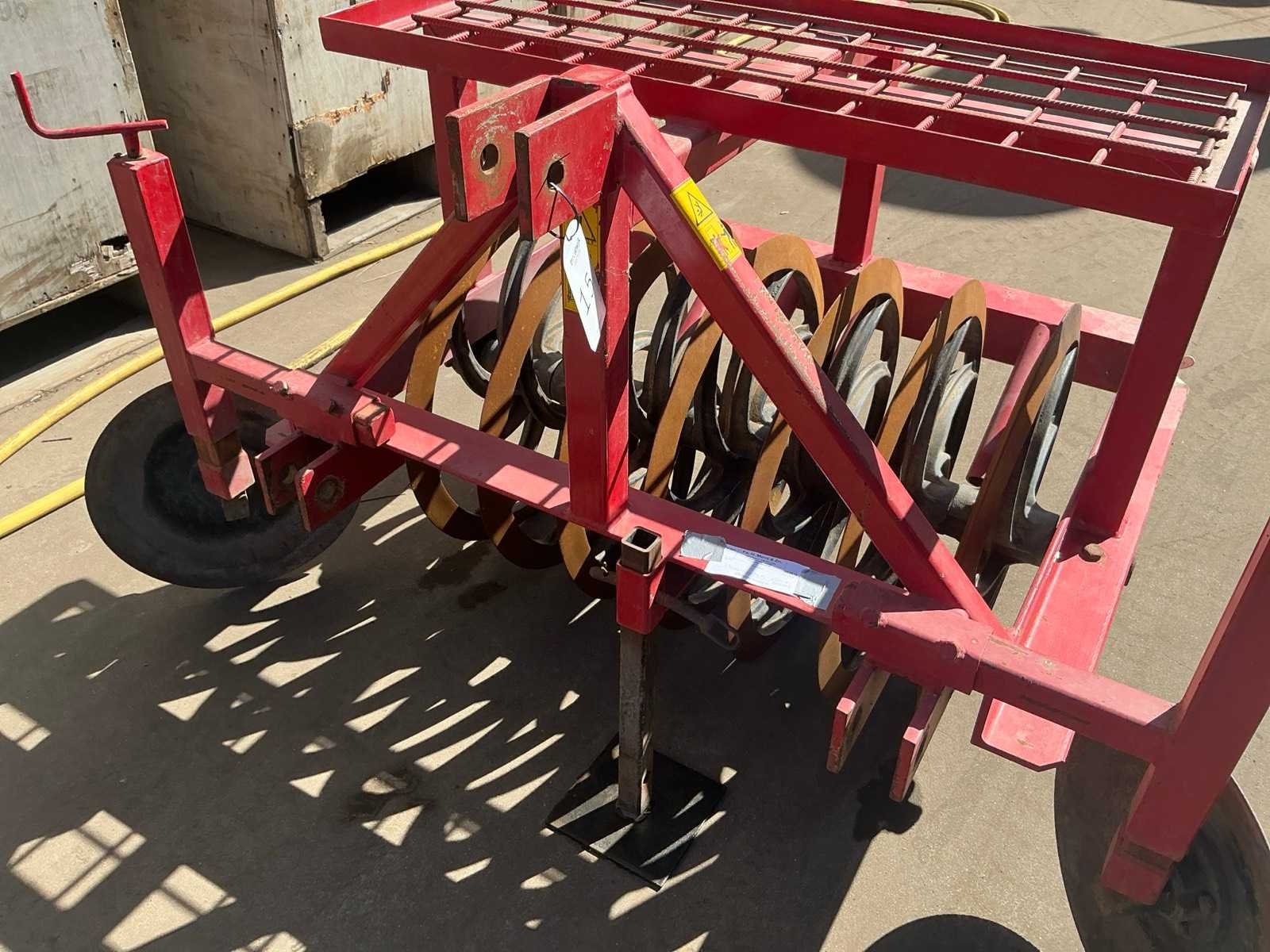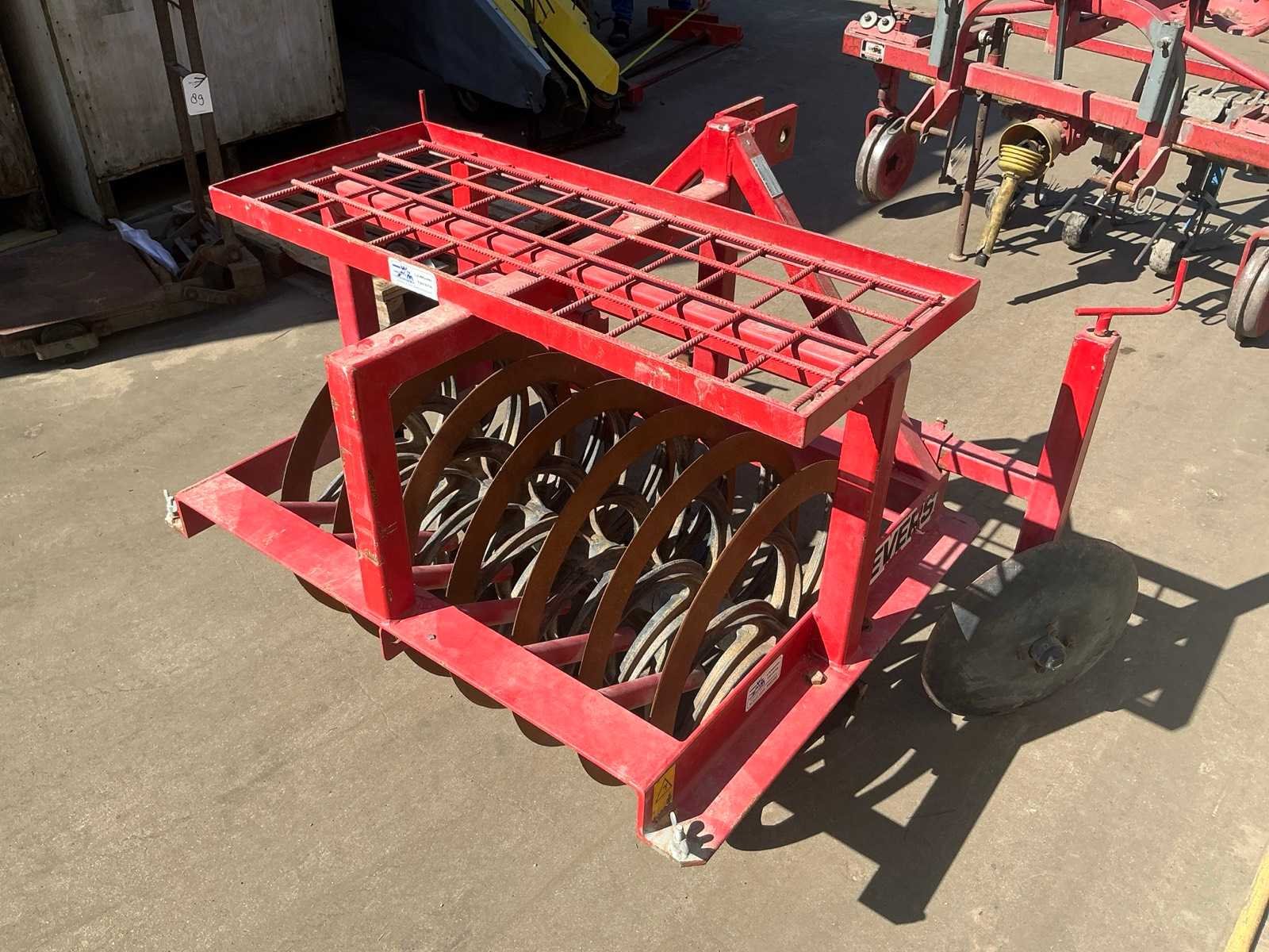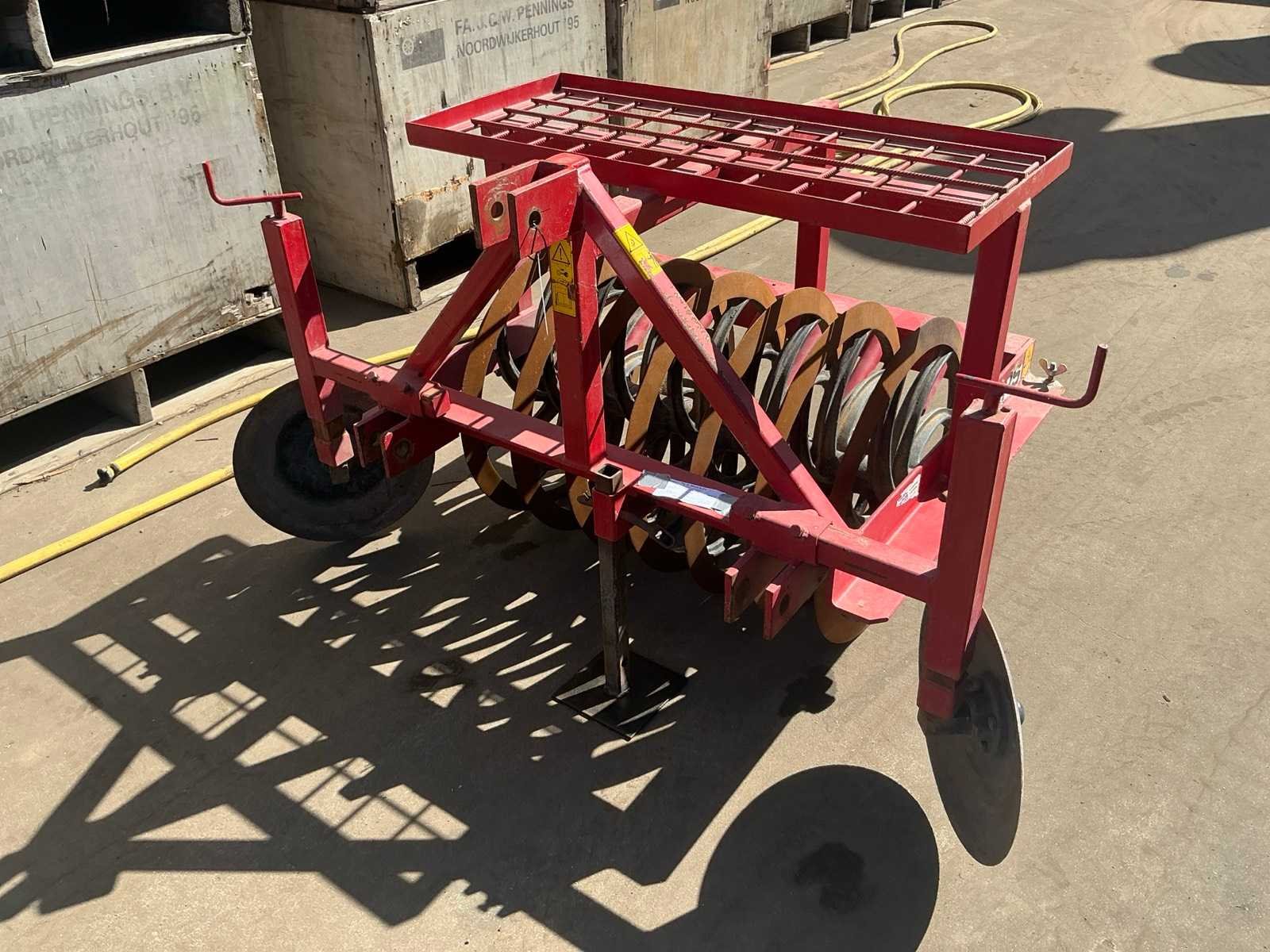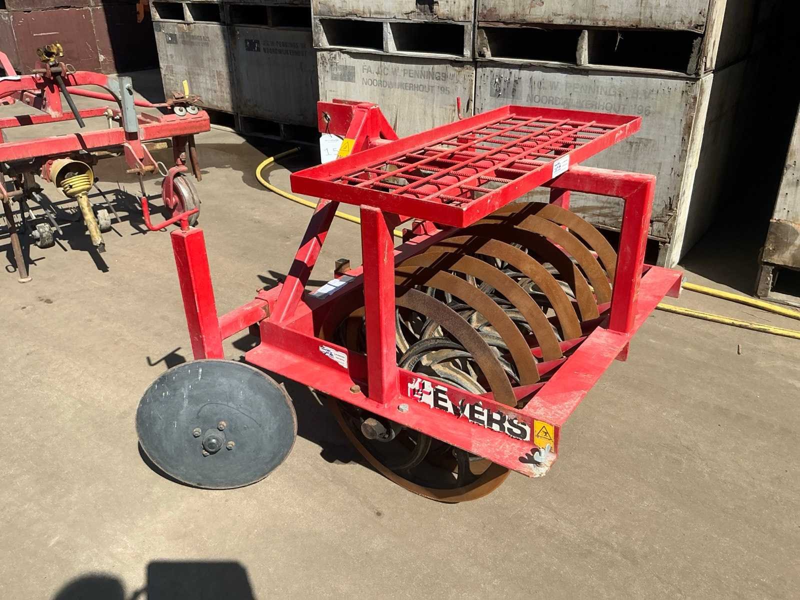 Voorzien van onder andere driepunts inrichting, steunpoot en in hoogte verstelbare schijven. Merk: Evers Type: EW-G7 Bouwjaar: 2000 Serienummer: 55081809 Eigen gewicht: 445kg Totale afmeting L: 1120mm Totale afmeting Breedte: 1800mm Totale afmeting Hoogte: 1050mm