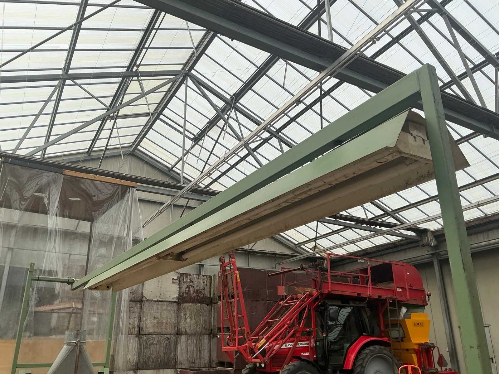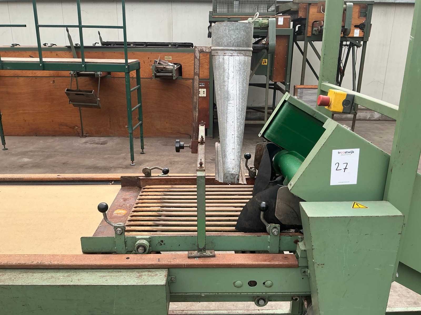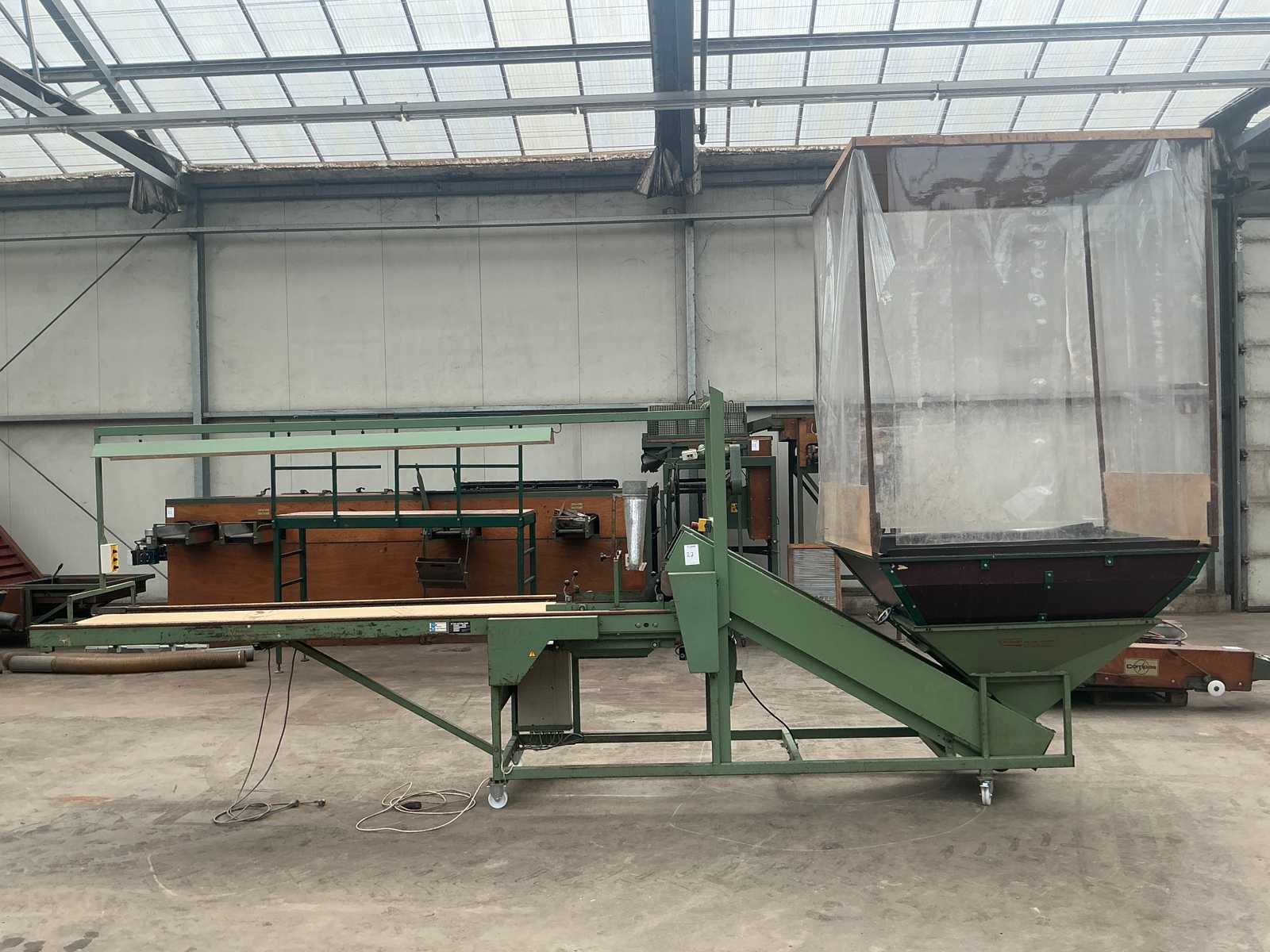 Leesband met opvoerelevator en voor sortering. v.v. Invoerbunker met stofafscherming (1670x1300x2500 mm), elevator (werkbreedte 495 mm), trilzeef (werkbreedte 480 mm), leesband met verlichting (werkbreedte 620 mm, bandlengte 2680 mm), instelbare bandsnelheden, elektrische aandrijving, 220 volt, regelunit, verrijdbaar onderstel. Merk: van Nobelen Type: 21-020 Bouwjaar: 1995 Serienummer: 02 Aansluiting: 220V Totale afmeting L: 6050mm Totale afmeting Breedte: 1300mm Totale afmeting Hoogte: 3350mm