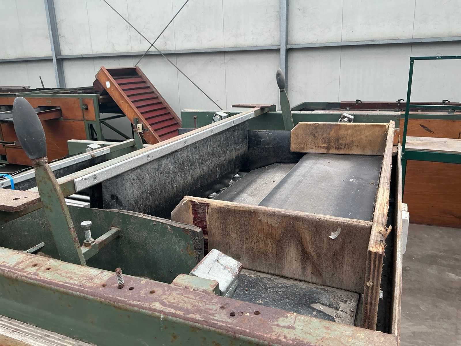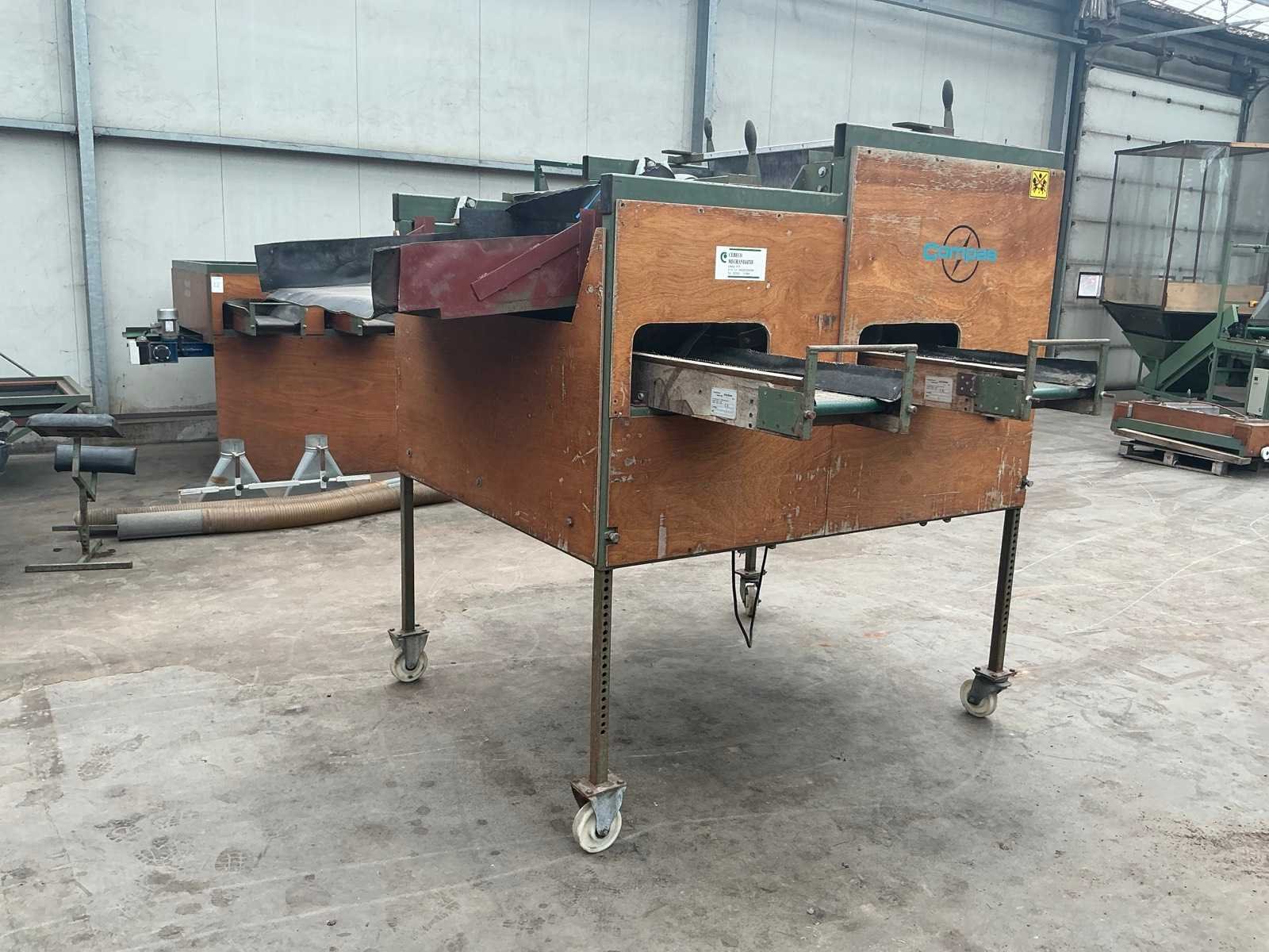 Baanbreedte 950mm, voorzien van 2 afvoerbanden. Merk: Compas Type: RSZ 100 S2 HV Bouwjaar: 1995 Serienummer: 297150595 Aansluiting: 380V Totale afmeting L: 2400mm Totale afmeting Breedte: 2200mm Totale afmeting Hoogte: 2300mm