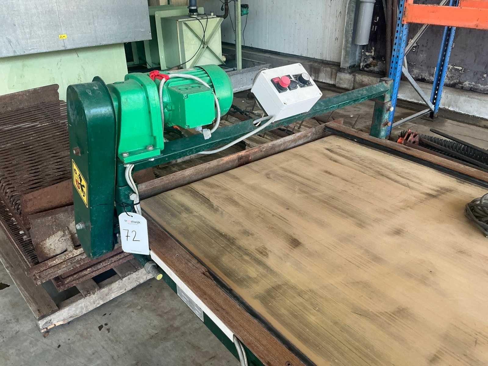 230v aansluiting Merk: Total systems Type: LB100600 Bouwjaar: 2000 Serienummer: 0005013 Bandlengte: 6100mm Bandbreedte: 950mm Eigen gewicht: 350kg Totale afmeting L: 6150mm Totale afmeting Breedte: 1280mm Totale afmeting Hoogte: 1280mm