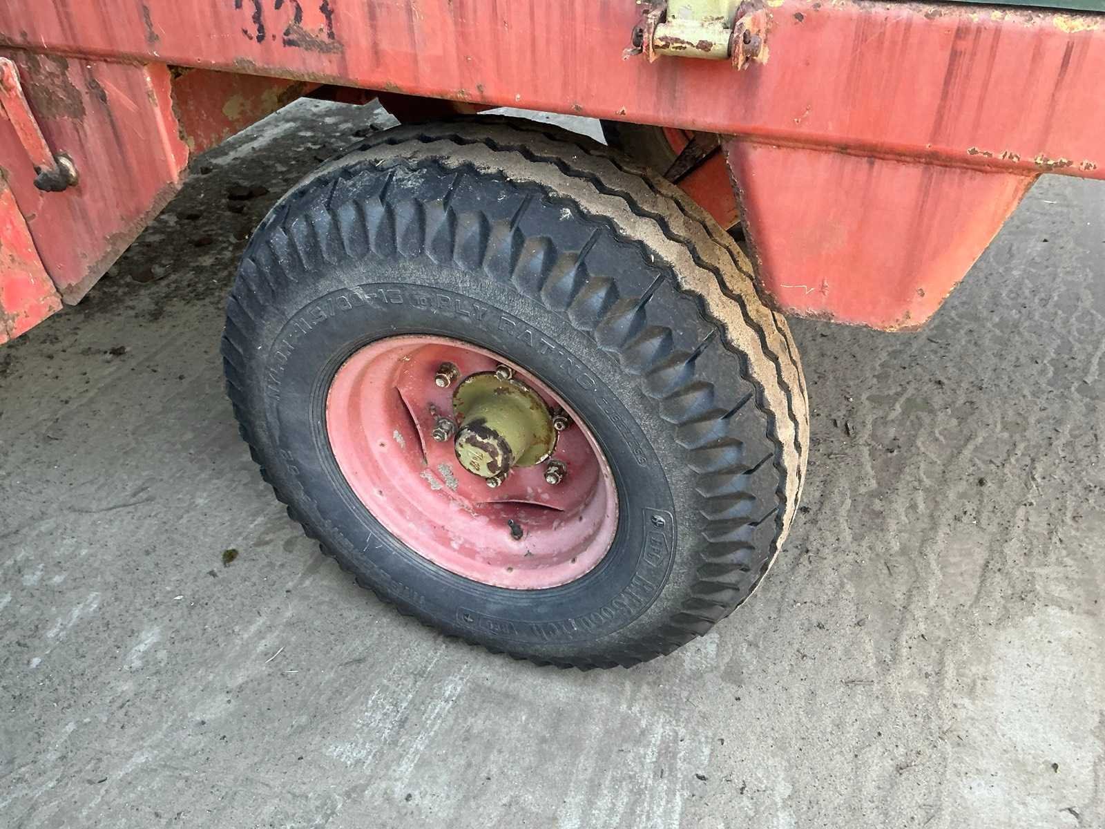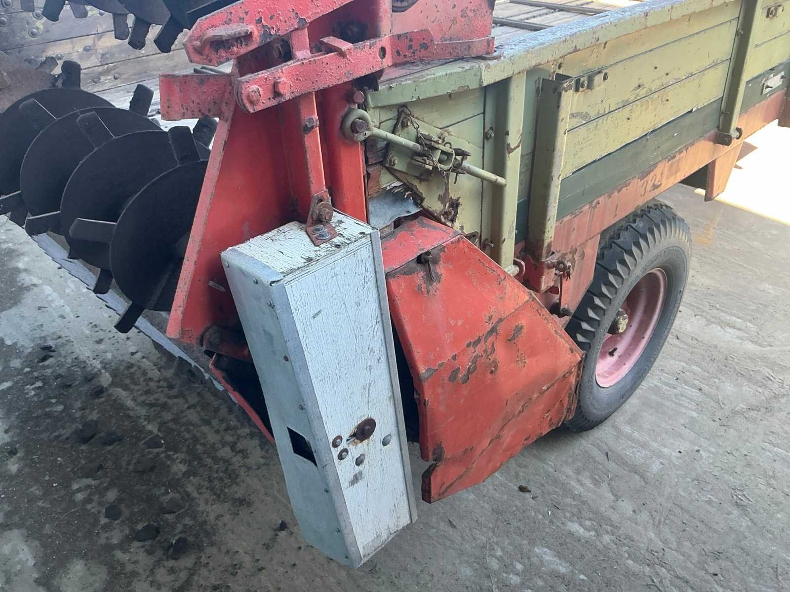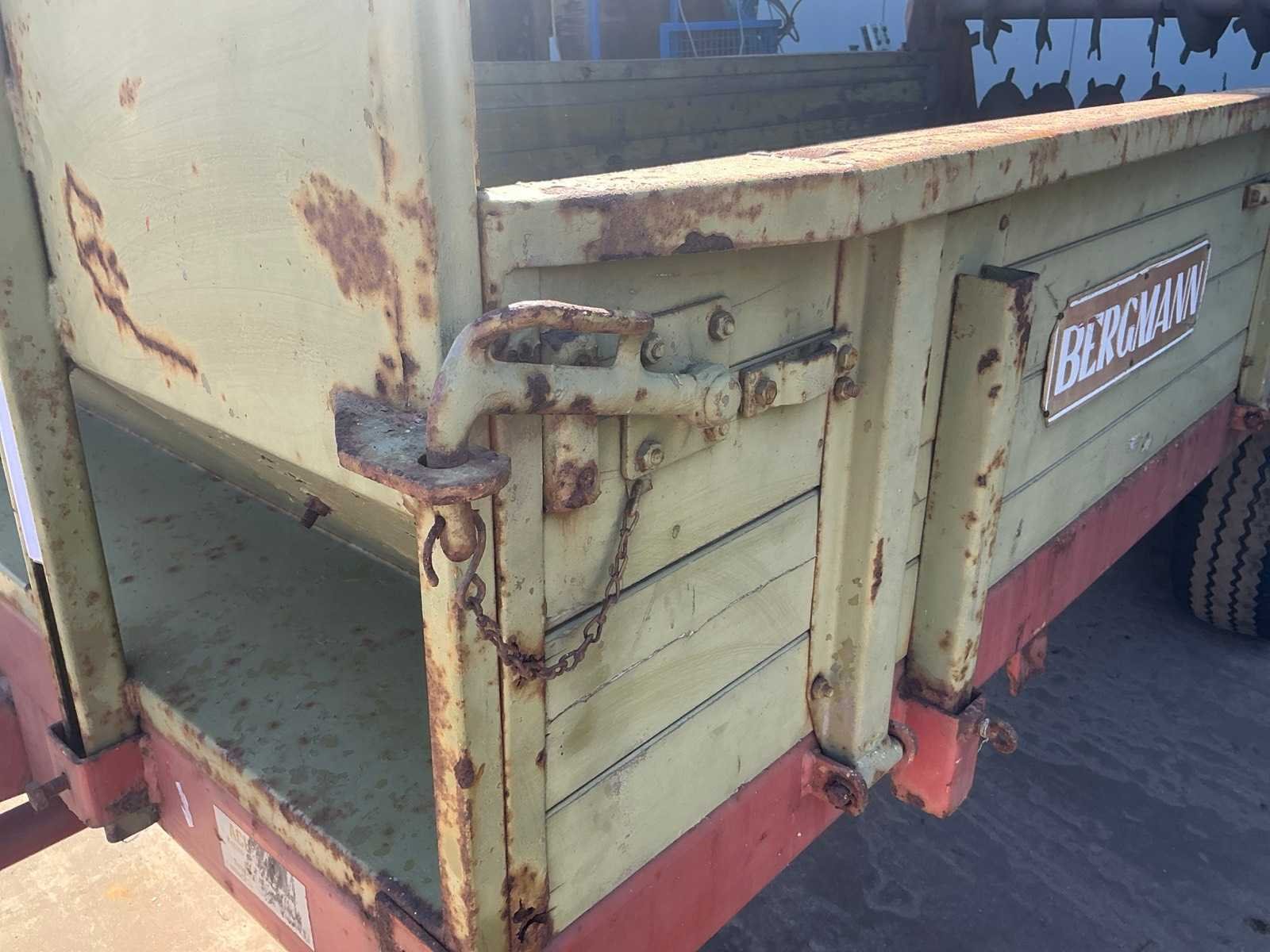 Voorzien van onder andere: steunwiel, aftakas aandrijving, en 2 horizontale verdeelwalsen. Merk: Bergmann Type: M64 Bouwjaar: 1990 Serienummer: 1.20089 Kenteken: LZJ-42-G Bandenmaat: 11.5/80-15 Totale afmeting L: 5550mm Totale afmeting Breedte: 2150mm Totale afmeting Hoogte: 1860mm