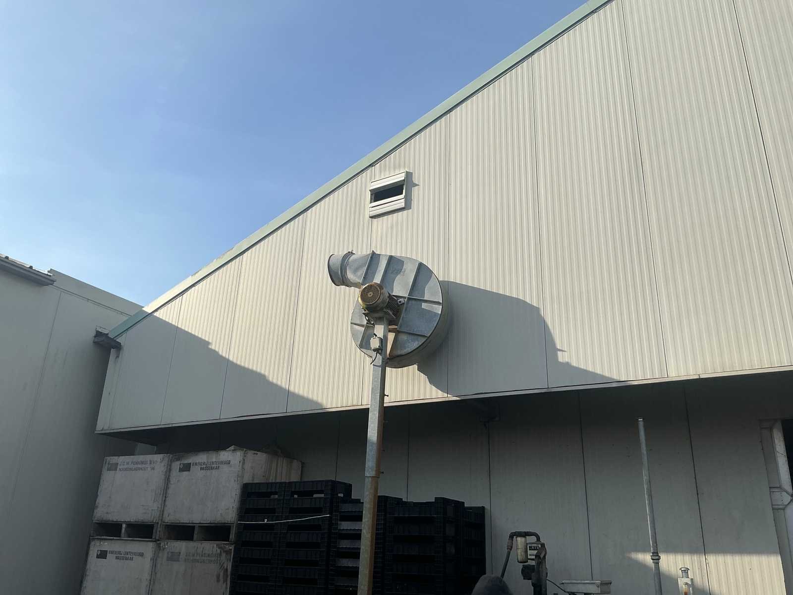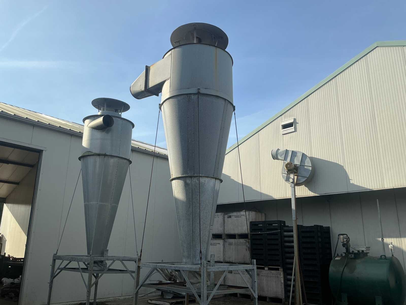 Inclusief diverse afzuigbuizen (reeds gedemonteerd). Merk: Agro Techniek Motorvermogen (kW): 5.5kW Aansluiting: 380V Afmeting l: 1250mm Afmeting b: 1650mm Afmeting h: 6000mm