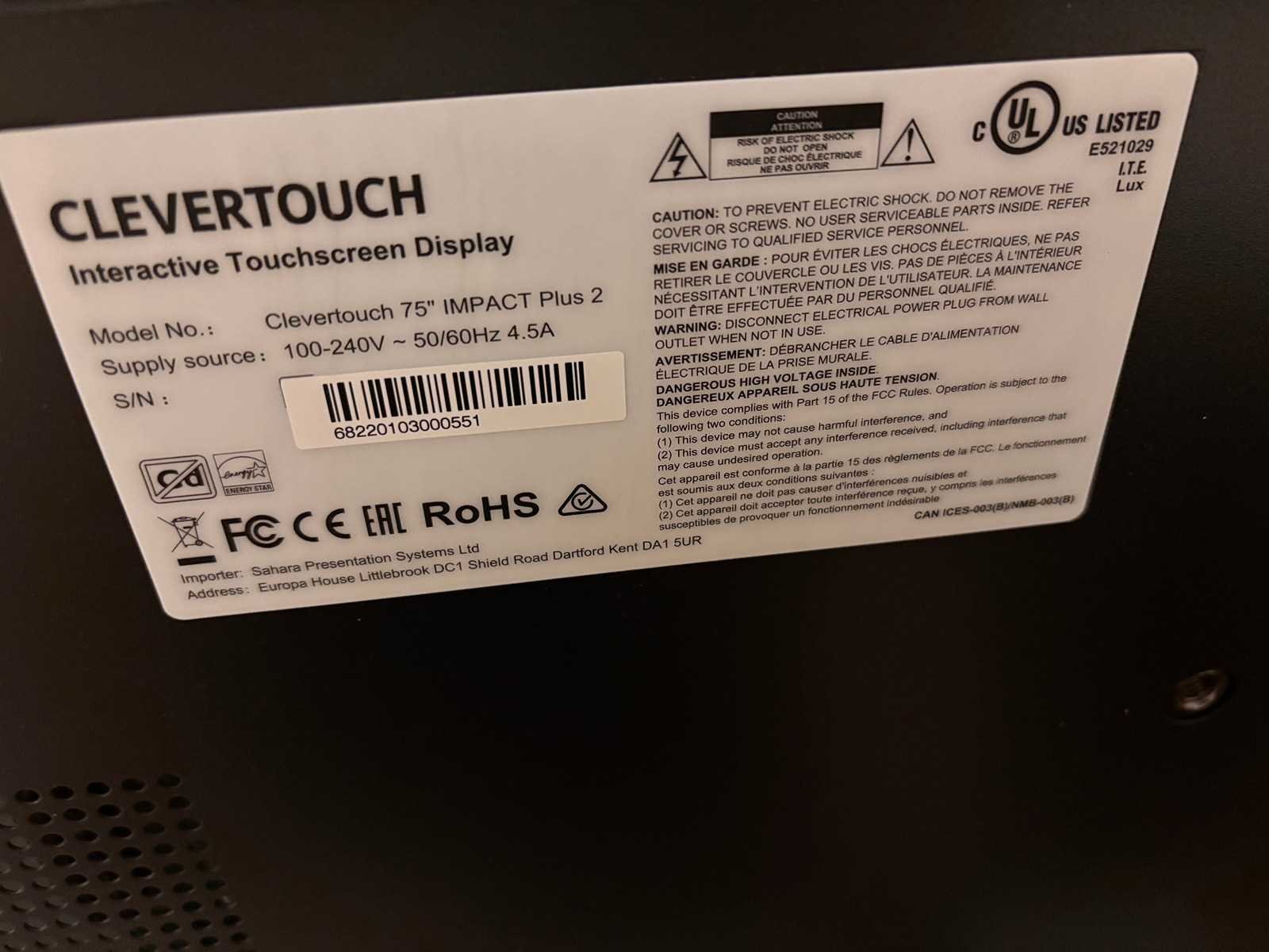 2022 clevertouch impact plus 2 interactive touchscreen 75”