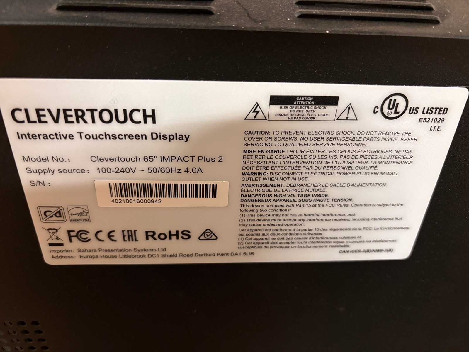 2021 clevertouch impact plus 2 interactive touchscreen 65”