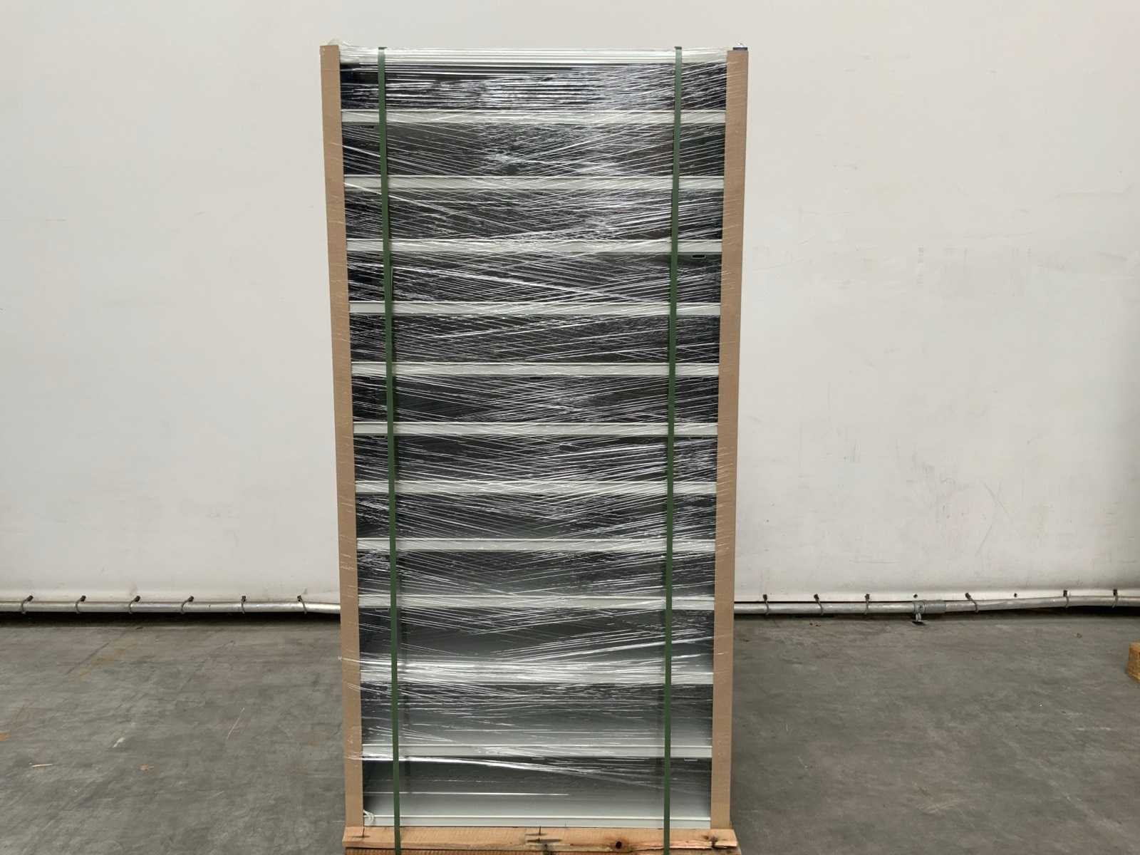 Ongebruikt; kleur blauw/grijs; 58 zwarte schotten; de geïllustreerde blauwe schotten horen niet bij het kavel 7023 Merk: Povag Lengte: 100cm Breedte: 45cm Hoogte: 198cm