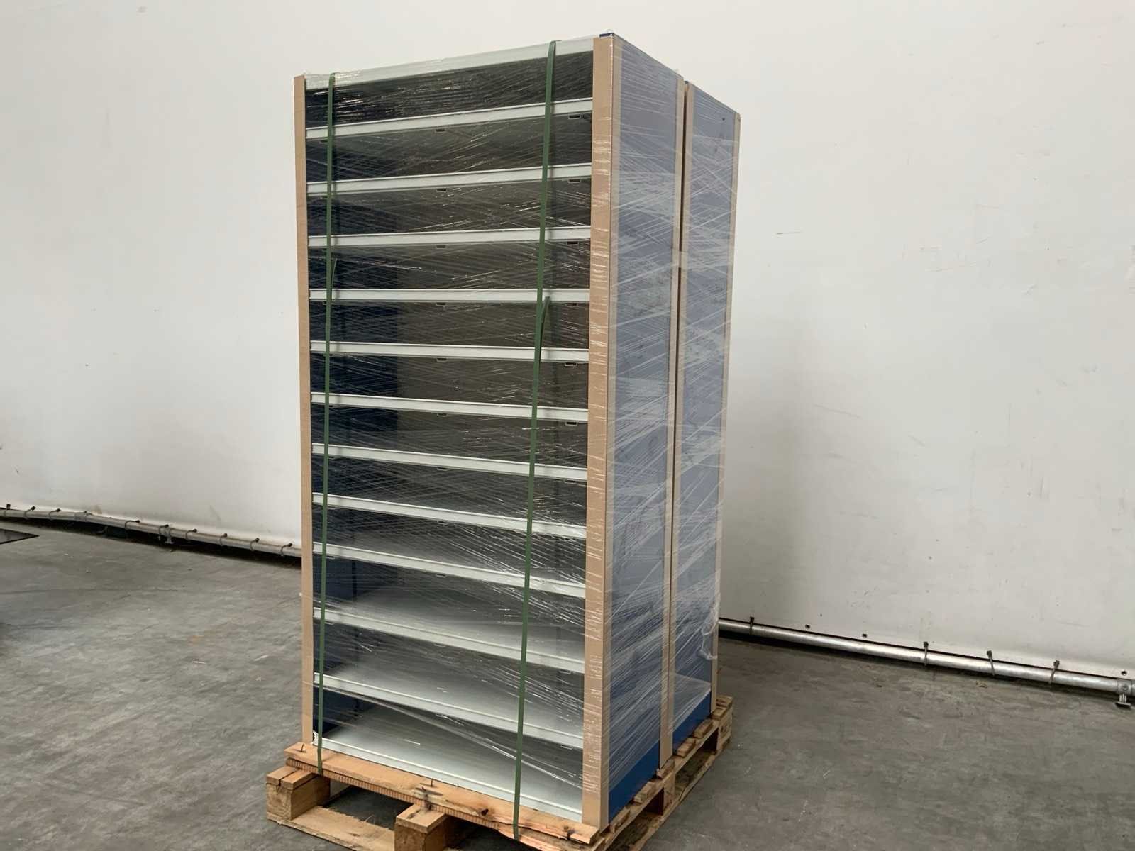 Ongebruikt; kleur blauw/grijs; 58 zwarte schotten; de geïllustreerde blauwe schotten horen niet bij het kavel 7023 Merk: Povag Lengte: 100cm Breedte: 45cm Hoogte: 198cm