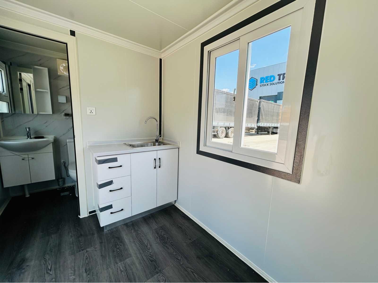 Afsluitbare deur; 2 schuiframen; 1 kiep raam; stelbare poten; hijs oog; opstapje; vinyl vloer; wastafel; toilet; douche; keukenbok; geïsoleerd; ventilator; aansluitingen aanwezig voor af- en aanvoer; 7412 Merk: RTE Type: 7412 Bouwjaar: 2025 Schakelunit: true Aantal ramen: 3 Keukenblok: true Toilet: true Eigen gewicht: 1900kg Totale afmeting L: 5960mm Totale afmeting Breedte: 2200mm Totale afmeting Hoogte: 2450mm