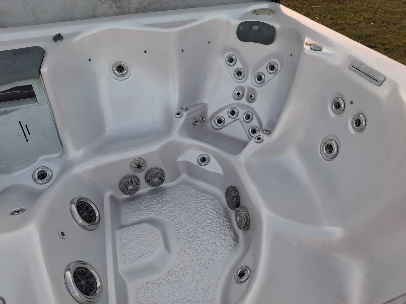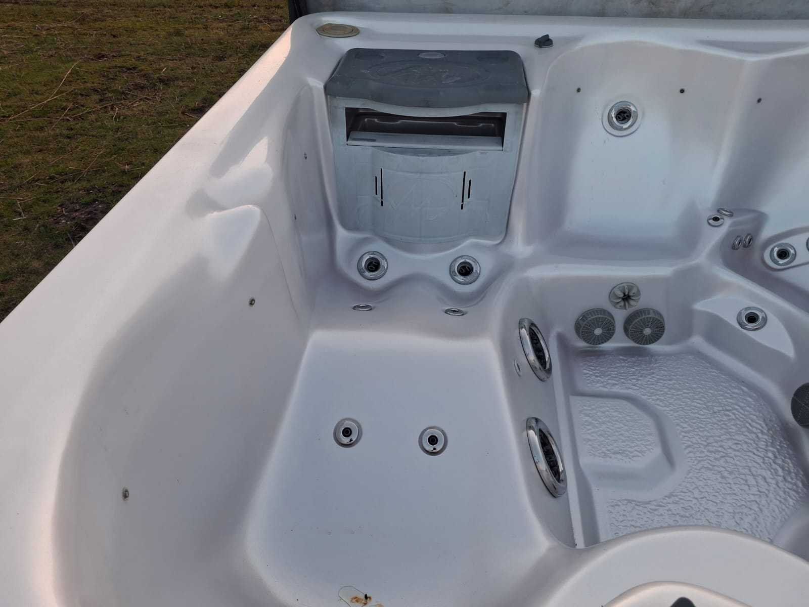 Voorzien van lift voor de cover; nek/schouder massage; inclusief cover; Amerikaanse jacuzzi; speakers; kunststof omkasting; waterval; Niet getest op functioneren (Marge, geen BTW) Merk: Balboa Model: 5 persoons Verlichting: Ja Jets: 50 Aantal personen: 5 Lengte: 230cm Breedte: 230cm Hoogte: 92cm