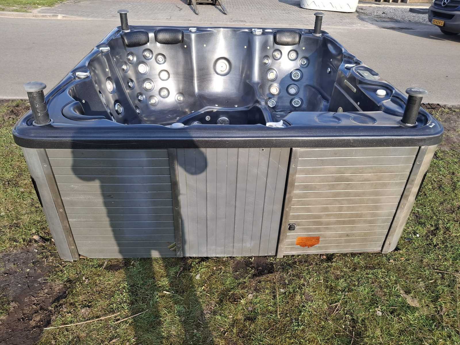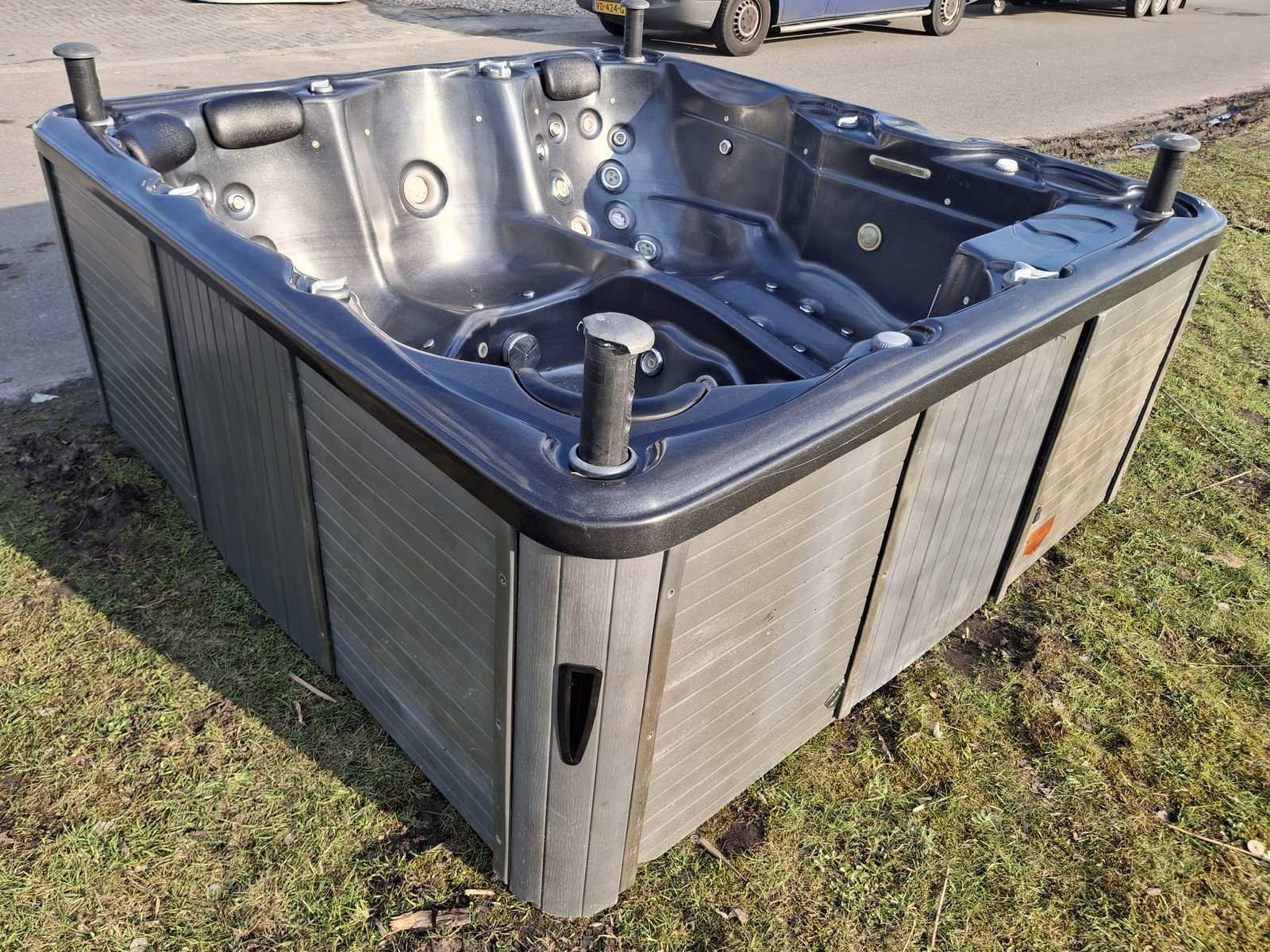 Voorzien van speakers; kunststof omkasting; 1 ligplaats; 4 zitplaatsen; waterval; hoofdkussens; automatisch filtersysteem; nek/schouder massage; Niet getest op functioneren (Marge, geen BTW) Merk: Balboa Model: 5 persoons Verlichting: Ja Jets: 48 Aantal personen: 5 Lengte: 230cm Breedte: 230cm Hoogte: 93cm