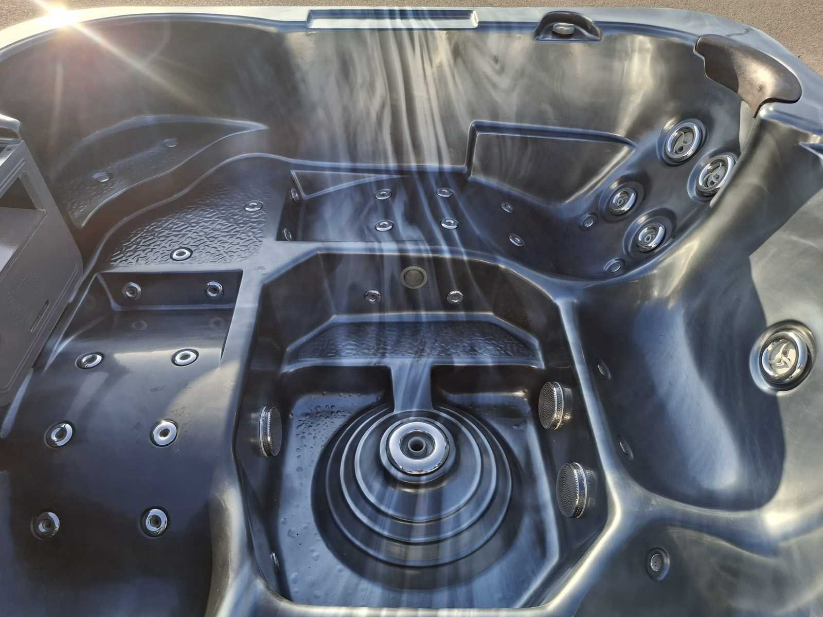 Voorzien van 2 ligplaatsen; 3 zitplaatsen; RVS massage jets; kunststof omkasting; hoofdkussens; automatisch filtersysteem; Niet getest op functioneren (Marge, geen BTW) Merk: L Spa Model: 5 persoons Verlichting: Ja Jets: 48 Aantal personen: 5 Lengte: 230cm Breedte: 230cm Hoogte: 92cm