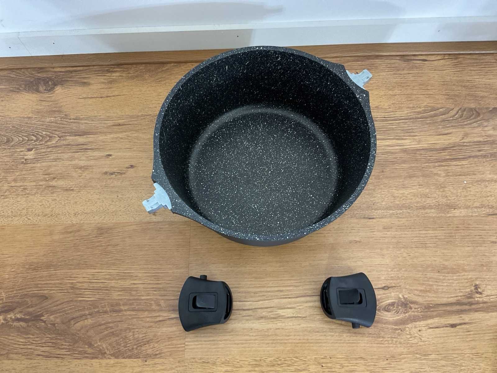 Merk: Edenberg Type: EB-5632 Serie: Premium Line Aantal delen: 10-delig Toepassing: Dagelijks koken / professioneel gebruik Materiaal: Gesmeed aluminium Coating: 3-laags marmer / keramische antiaanbaklaag Bodem: Inductie sandwichbodem (optimale warmteverdeling) Handgrepen: Ergonomisch, hittebestendig Deksel: Gehard glas met RVS rand Antiaanbaklaag: Ja (slijtvast en duurzaam) Vetarm koken mogelijk: Ja Geschikt voor alle warmtebronnen: Ja (gas, elektrisch, keramisch, inductie) Kookpan Ø20 cm – ca. 2,0 liter Kookpan Ø24 cm – ca. 4,0 liter Kookpan Ø28 cm – ca. 6,5 liter Steelpan Ø16 cm – ca. 1,5 liter Hapjespan / braadpan Ø24 cm – ca. 2,5 liter Inclusief bijpassende glazen deksels Vaatwasserbestendig: Ja Krasbestendig: Ja nieuw in verpakking Merk: Edenberg Model: EB-5632