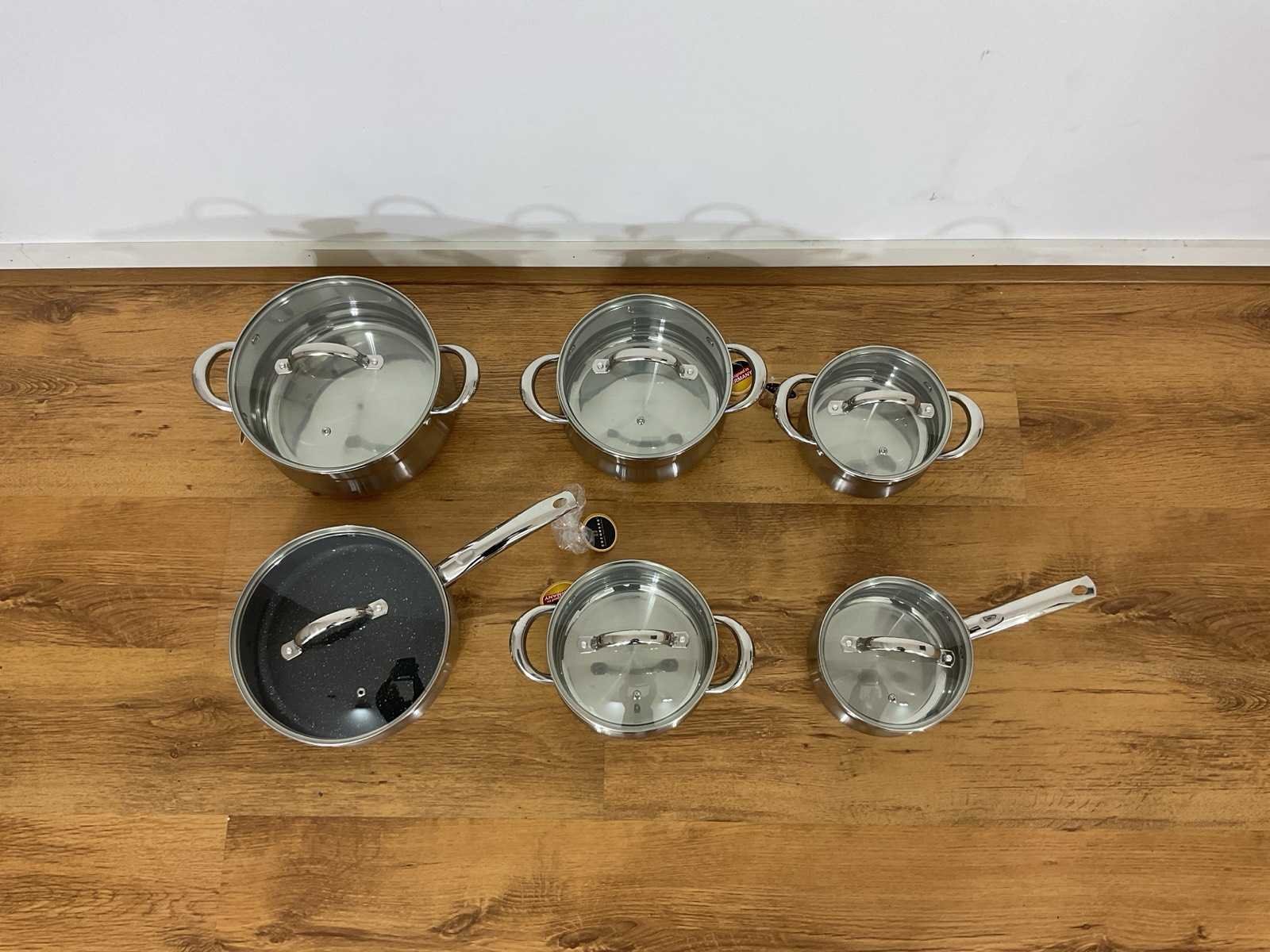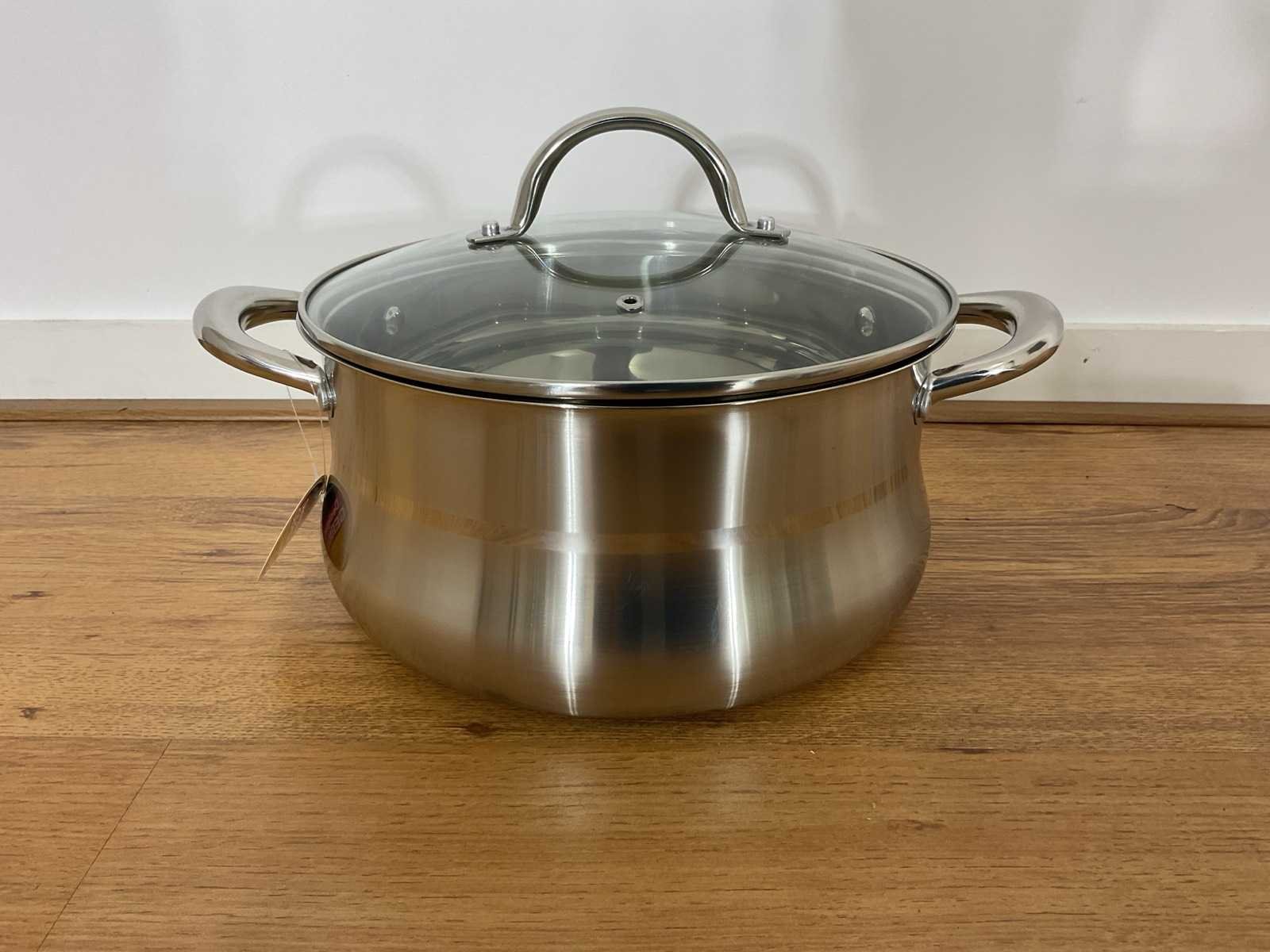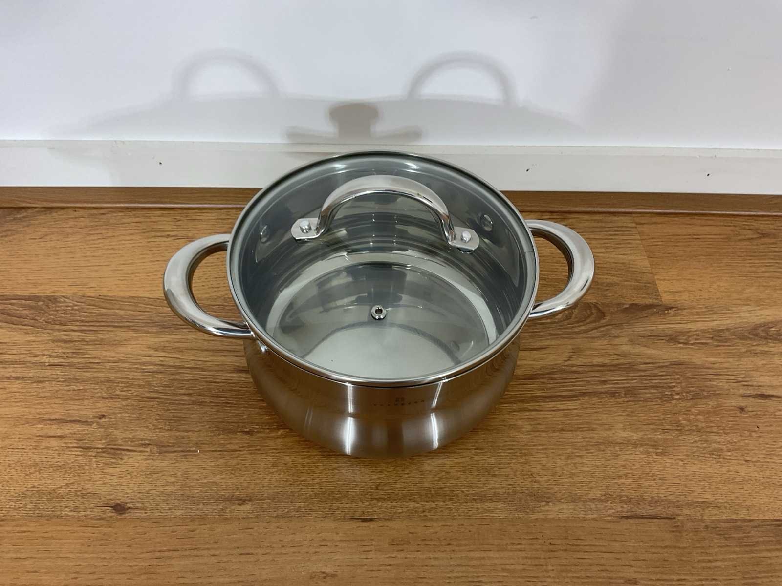Merk: Edenberg Type: EB-2420M Serie: Classic Line Aantal delen: 12-delig Toepassing: Dagelijks koken / compleet keukenpakket Materiaal: Hoogwaardig roestvrij staal (RVS) Bodem: Sandwichbodem (snelle en gelijkmatige warmteverdeling) Handgrepen: RVS, hittebestendig Deksel: Gehard glas met stoomventiel Warmteverdeling: Snel en gelijkmatig Warmtebehoud: Hoog Geschikt voor alle warmtebronnen: Ja (gas, elektrisch, keramisch, inductie) Energiezuinig koken: Ja Steelpan Ø16 cm – ca. 1,8 liter Kookpan Ø16 cm – ca. 1,8 liter Kookpan Ø18 cm – ca. 2,5 liter Kookpan Ø20 cm – ca. 3,4 liter Kookpan Ø24 cm – ca. 5,5 liter Hapjespan Ø24 cm – ca. 3,1 liter Inclusief glazen deksels Interne maatverdeling: Ja Druipvrije rand: Ja Vaatwasserbestendig: Ja Onderhoud: Eenvoudig te reinigen nieuw in doos Merk: Edenberg Model: EB-2420M