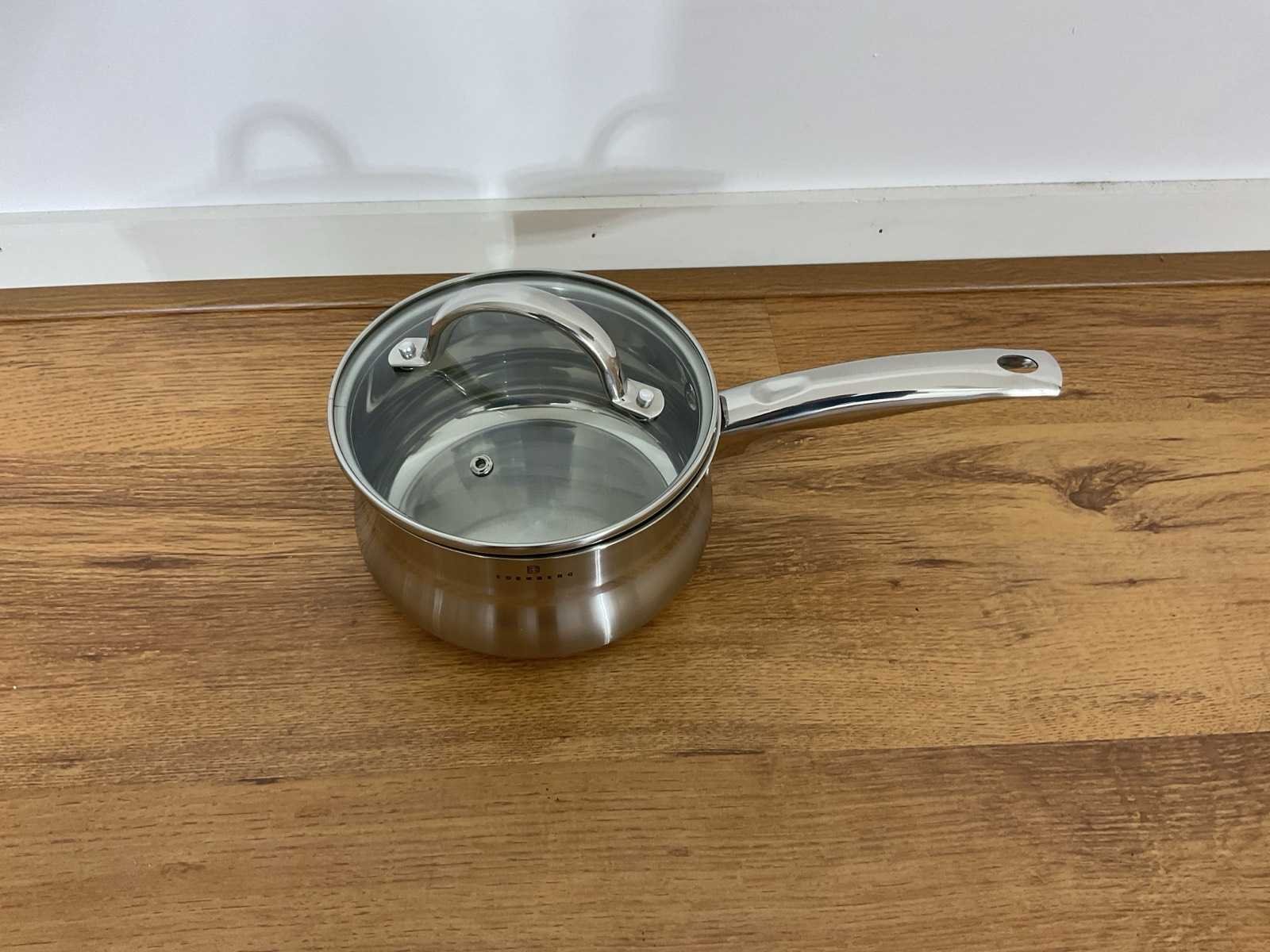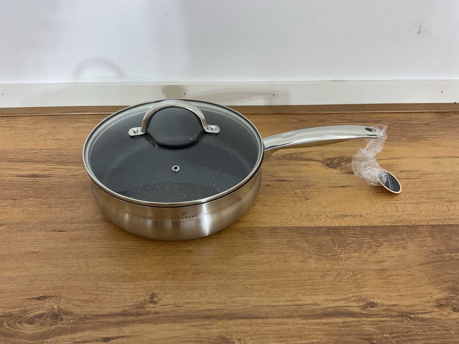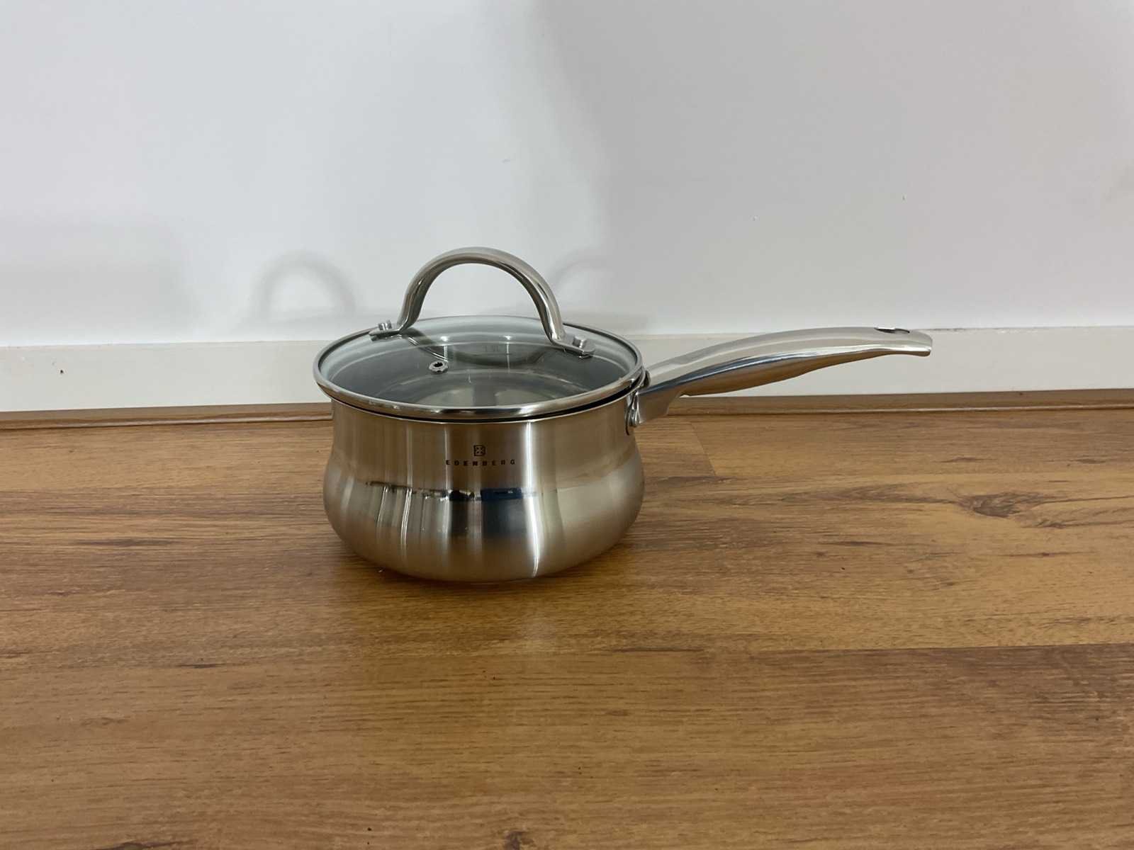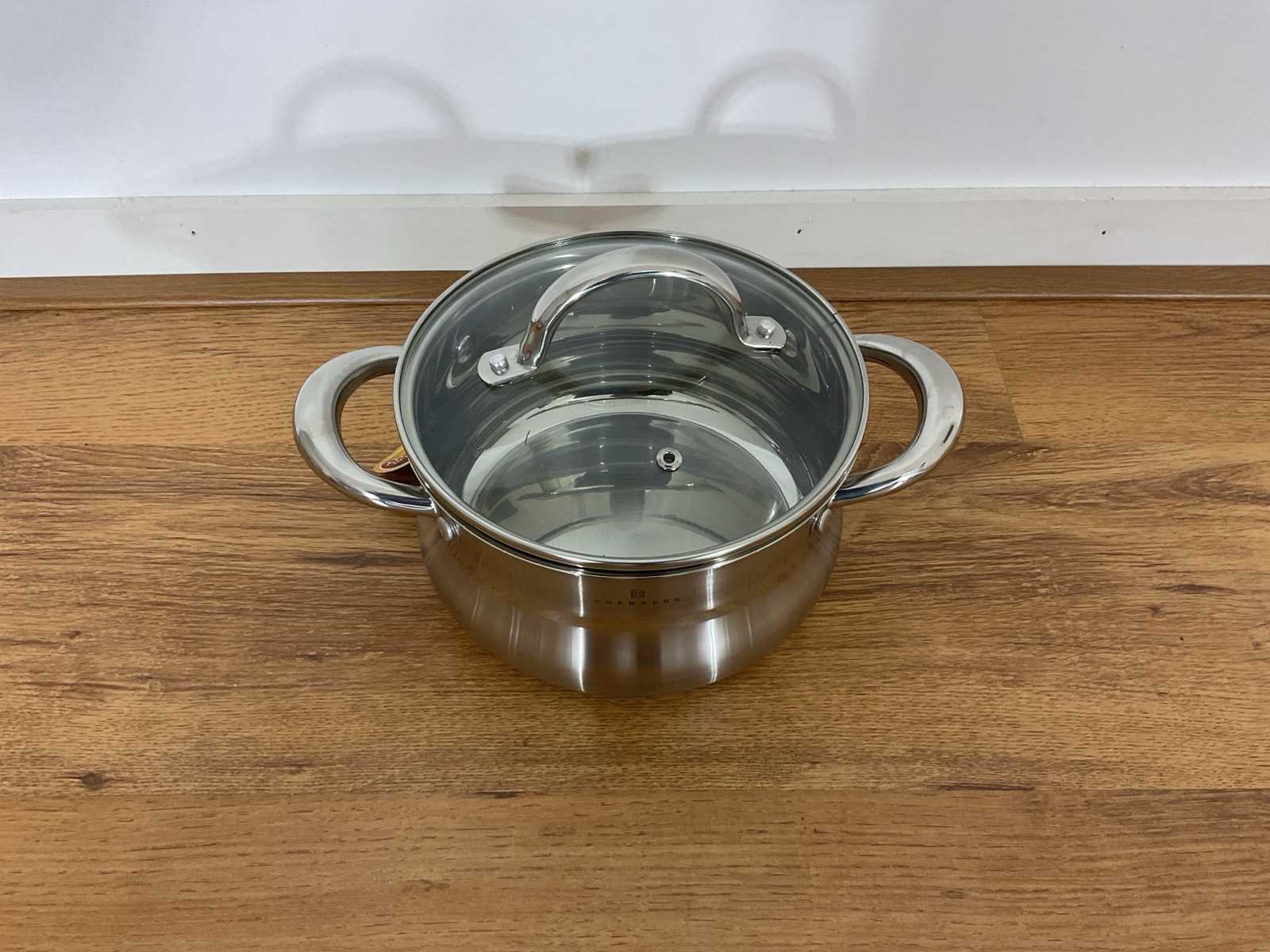 Merk: Edenberg Type: EB-2420M Serie: Classic Line Aantal delen: 12-delig Toepassing: Dagelijks koken / compleet keukenpakket Materiaal: Hoogwaardig roestvrij staal (RVS) Bodem: Sandwichbodem (snelle en gelijkmatige warmteverdeling) Handgrepen: RVS, hittebestendig Deksel: Gehard glas met stoomventiel Warmteverdeling: Snel en gelijkmatig Warmtebehoud: Hoog Geschikt voor alle warmtebronnen: Ja (gas, elektrisch, keramisch, inductie) Energiezuinig koken: Ja Steelpan Ø16 cm – ca. 1,8 liter Kookpan Ø16 cm – ca. 1,8 liter Kookpan Ø18 cm – ca. 2,5 liter Kookpan Ø20 cm – ca. 3,4 liter Kookpan Ø24 cm – ca. 5,5 liter Hapjespan Ø24 cm – ca. 3,1 liter Inclusief glazen deksels Interne maatverdeling: Ja Druipvrije rand: Ja Vaatwasserbestendig: Ja Onderhoud: Eenvoudig te reinigen nieuw in doos Merk: Edenberg Model: EB-2420M