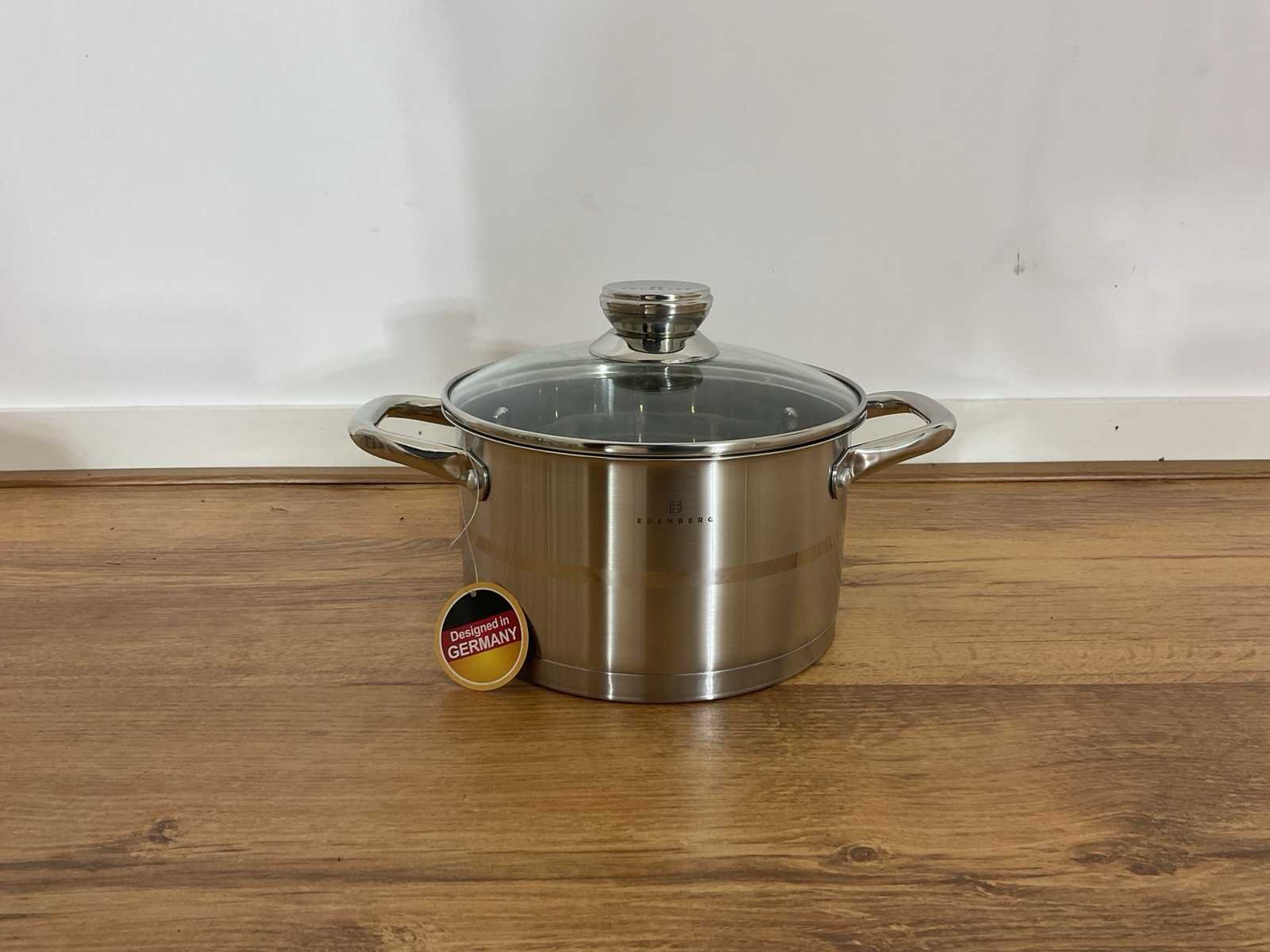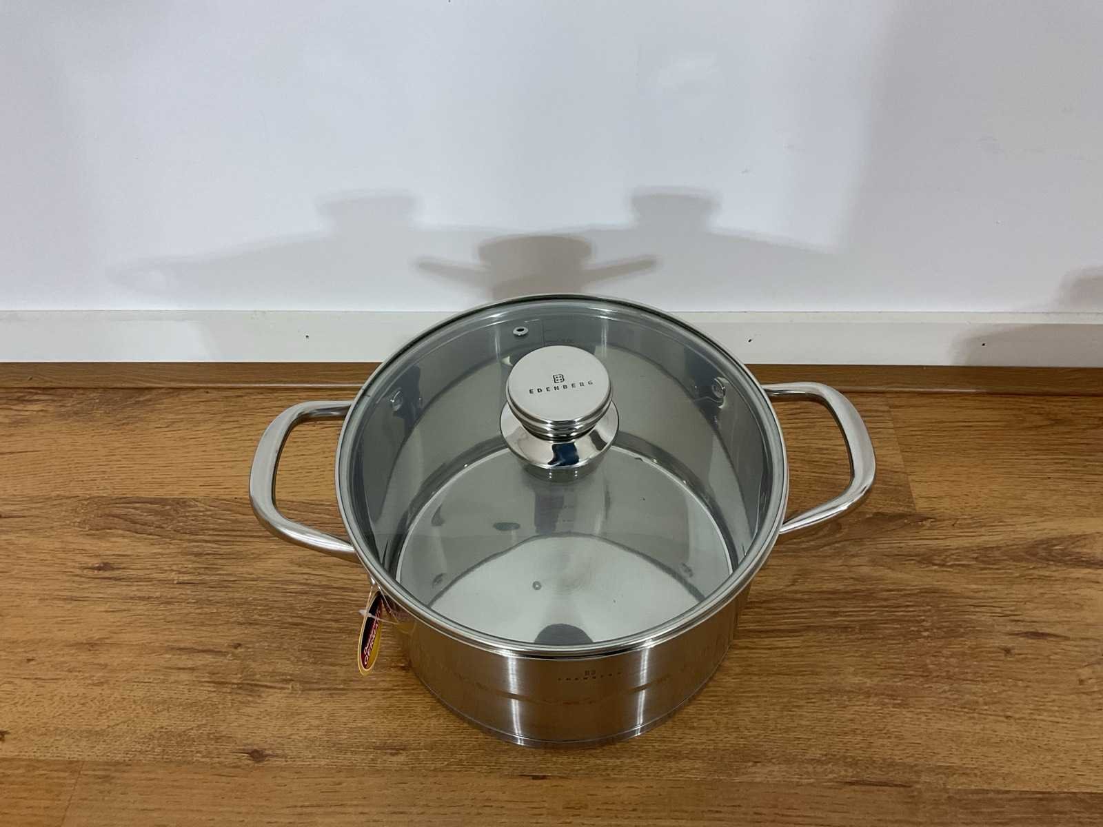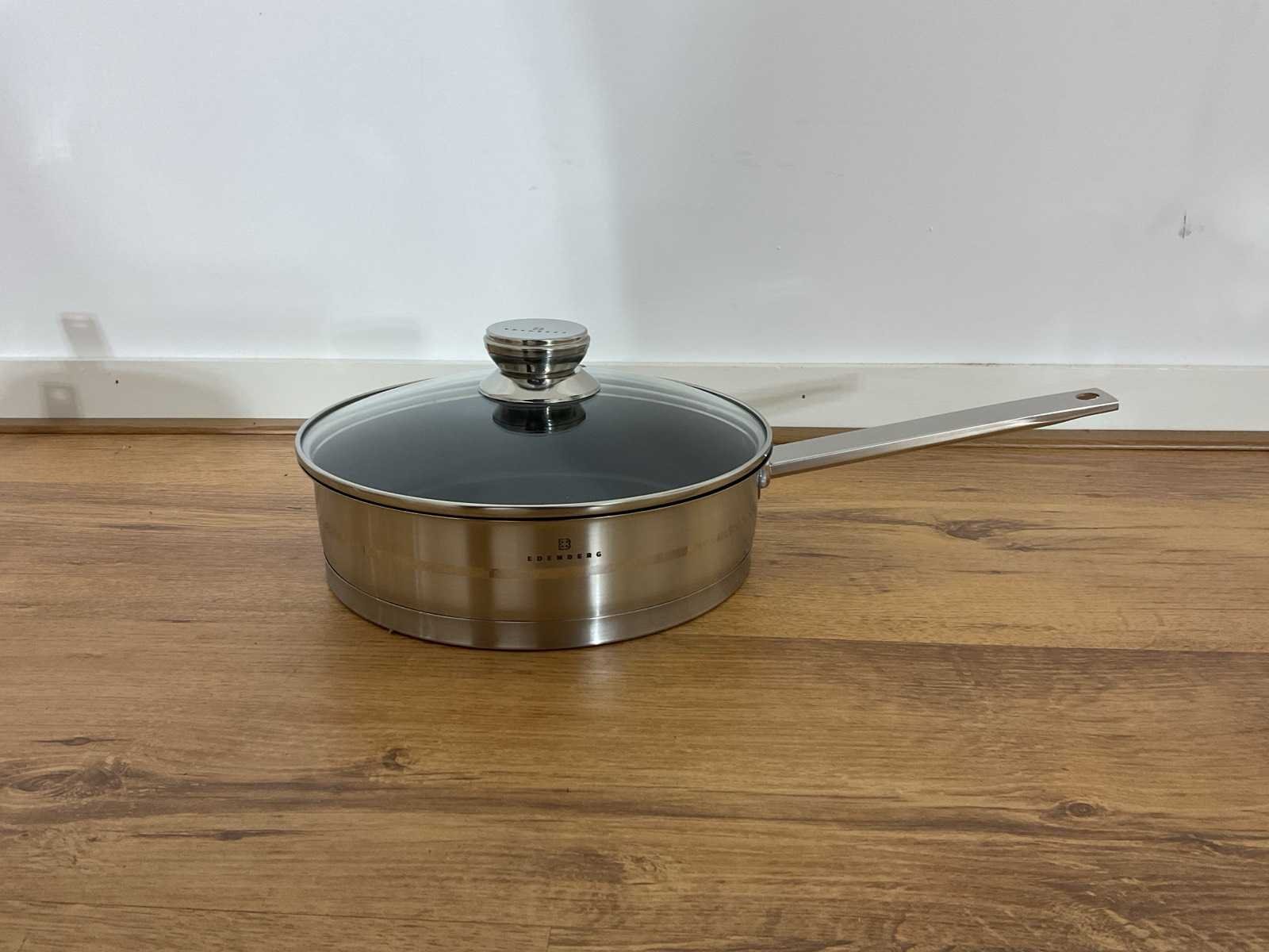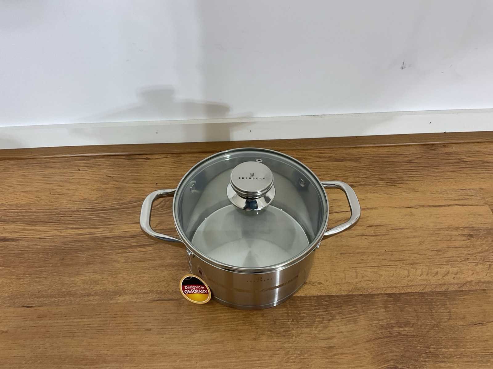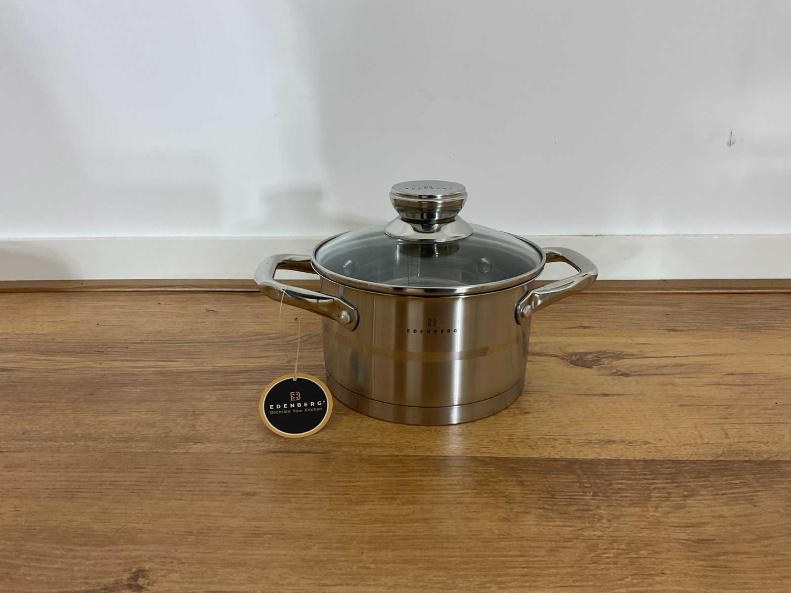 Robuuste en krasbestendige coating Geschikt voor alle soorten kookplaten - ook inductie Binnen- en buitenkant makkelijk schoon te maken Gemaakt van 18/10 roestvrijstaal Aantal pannen: 6 Geschikt voor alle warmtebronnen Inclusief deksel: Ja Kleur: Zilverkleurig Materiaal: RVS Vorm: Rond Met maatverdeling: Ja Materiaal deksel: Glas MPN: EB2401 Type anti-aanbaklaag: Standaard Type handgreep: Ergonomisch Type pan bodem: Sandwichbodem Aantal delen: 12 PFAS-vrij: ja Materiaal handgreep / handgrepen: RVS Antiaanbaklaag: Ja Steelpan met glazen deksel: inhoud 1.9 liter, 16 x 9,5 cm Kookpan met glazen deksel: inhoud 1.9 liter, 16 x 9,5 cm Kookpan met glazen deksel: inhoud 2.7 liter, 18 x 10,5 cm Kookpan met glazen deksel: inhoud 3.6 liter, 20 x 11,5 cm Kookpan met glazen deksel: inhoud 6,1 liter, 24 x 13,5 cm Hapjespan (marmer coating) met glazen deksel: inhoud 2.9 liter, 24 x 6,5 nieuw in doos Merk: Edenberg Model: EB-2401