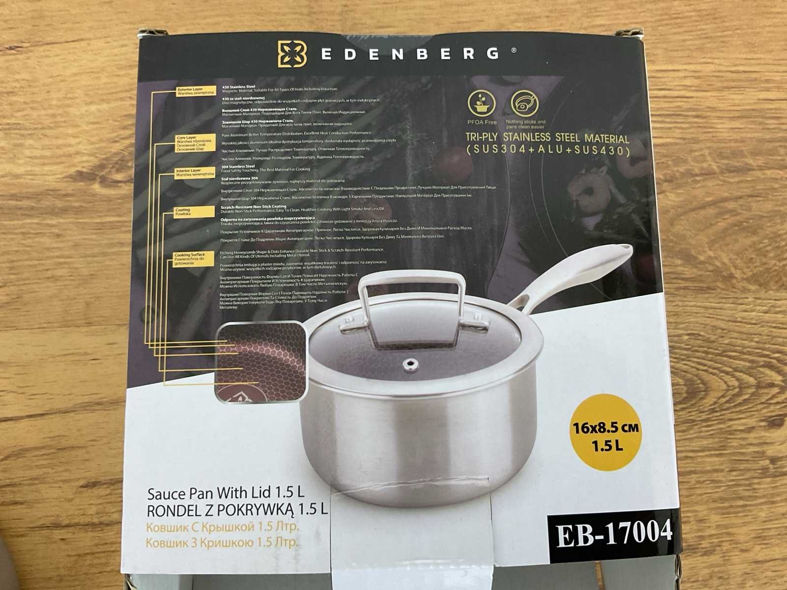 Geschikt voor alle warmtebronnen Inclusief deksel: Ja Kleur: Zilverkleurig Materiaal: RVS Vorm: Rond Cool touch handgreep: Ja Materiaal deksel: Glas Volume in liters: 1.5 Type anti-aanbaklaag: Keramisch Type handgreep: Ergonomisch Type deksel: Losse deksel Vaatwasserbestendig: Ja PFAS-vrij: ja Materiaal handgreep / handgrepen: RVS Nieuw in doos Merk: Edenberg Model: EB-17004
