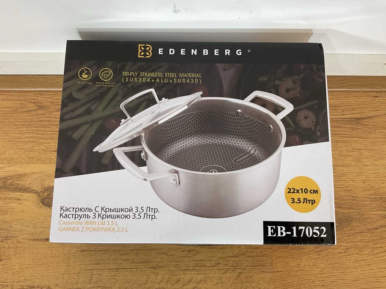 Geschikt voor alle warmtebronnen Inclusief deksel: Ja Kleur: Zilverkleurig Materiaal: RVS Vorm: Rond Cool touch handgreep: Ja Materiaal deksel: Glas MPN: EB17052 Diameter: 22 cm Product breedte: 22 cm Product hoogte: 10 cm Product lengte: 22 cm Volume in liters: 3.5 Type anti-aanbaklaag: Keramisch Type handgreep: Ergonomisch Type pan bodem: Antiaanbaklaag Vaatwasserbestendig: Ja Antiaanbaklaag: Ja Nieuw in doos Merk: Edenberg Model: EB-17052