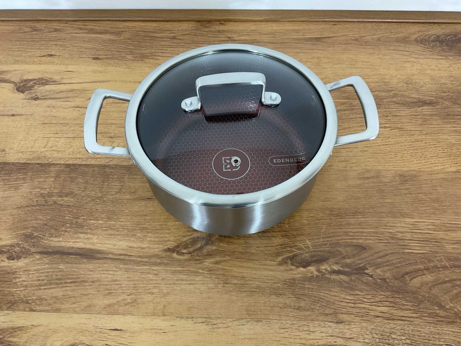 Geschikt voor alle warmtebronnen Inclusief deksel: Ja Kleur: Zilverkleurig Materiaal: RVS Vorm: Rond Cool touch handgreep: Ja Materiaal deksel: Glas MPN: EB-17057 Diameter 22 cm Product breedte 22 cm Product hoogte 10 cm Product lengte 22 cm Volume in liters: 3.5 Type anti-aanbaklaag: Keramisch Type handgreep: Ergonomisch Type pan bodem: Antiaanbaklaag Type deksel: Losse deksel Vaatwasserbestendig: Ja PFAS-vrij: ja Materiaal handgreep / handgrepen: RVS Nieuw in doos Merk: Edenberg Model: EB-17057