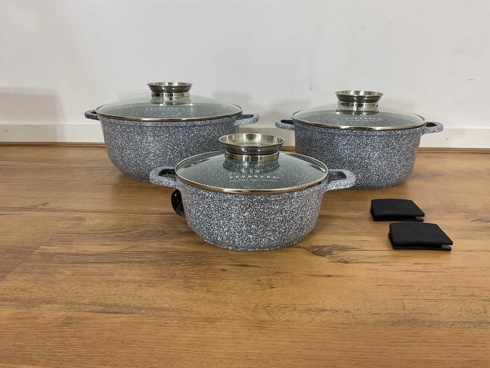 Aantal pannen: 3 Geschikt voor alle warmtebronnen Inclusief deksel: Ja Kleur: Grijs Materiaal: Gietaluminium Vorm: Rond Materiaal deksel: Glas MPN: EB8020 Type anti-aanbaklaag: Keramisch Type handgreep: Ergonomisch Type pan bodem: Antiaanbaklaag Aantal delen: 6 Vaatwasserbestendig: Ja PFAS-vrij: ja Antiaanbaklaag: Ja Kookpan met glazen deksel: inhoud 2,6 liter, Ø 20 x 9,5 cm Kookpan met glazen deksel: inhoud 4,6 liter, Ø 24 x 11,5 cm Kookpan met glazen deksel: inhoud 6,7 liter, Ø 28 x 12,5 cm Nieuw in doos Merk: Edenberg Model: EB-8020