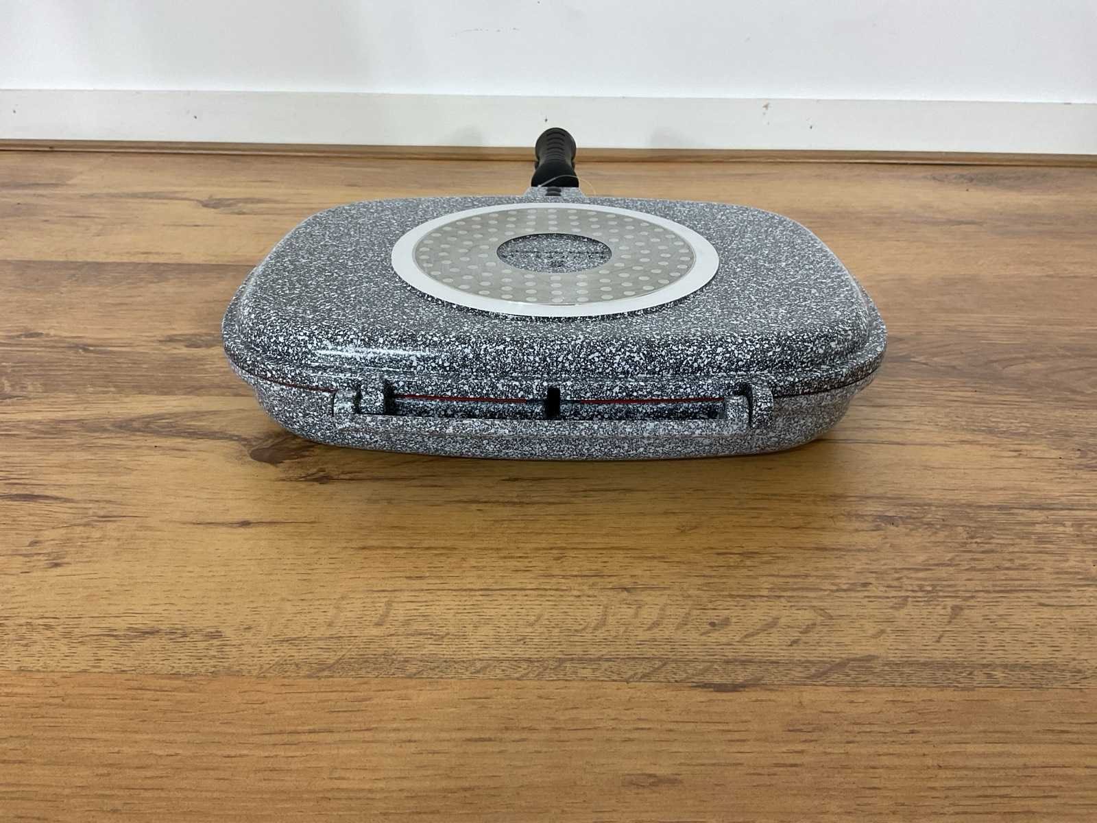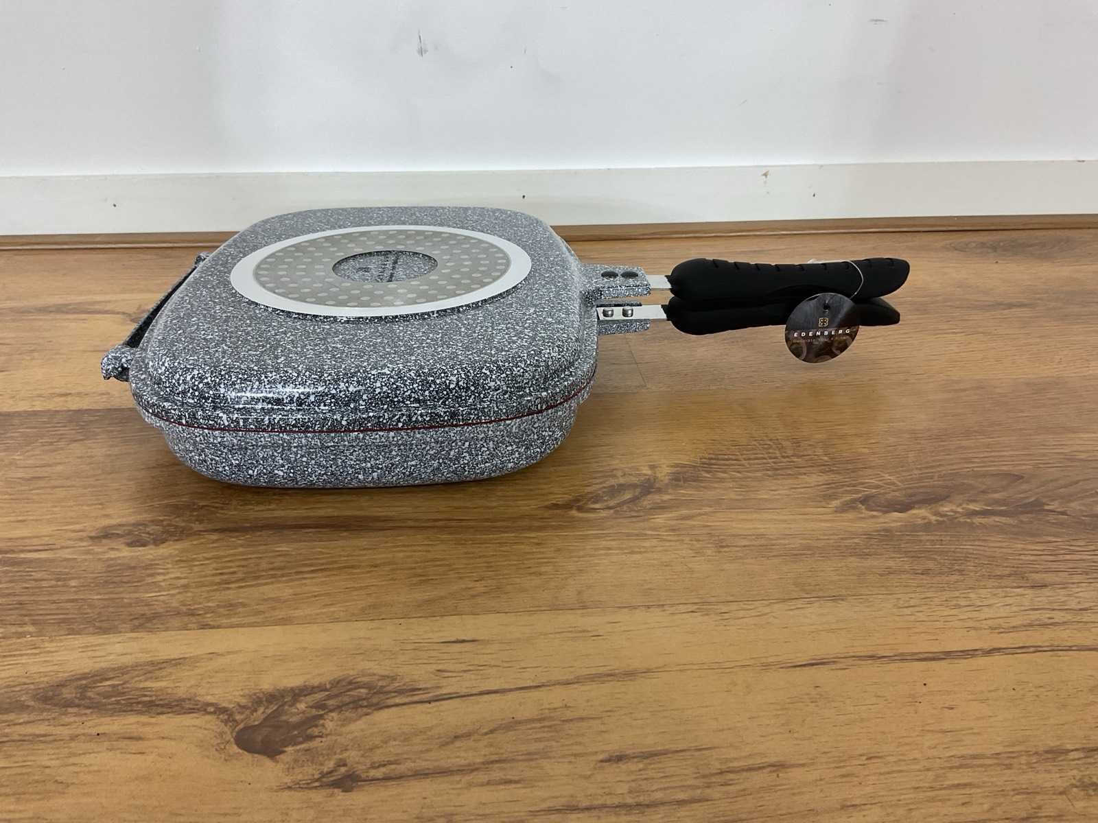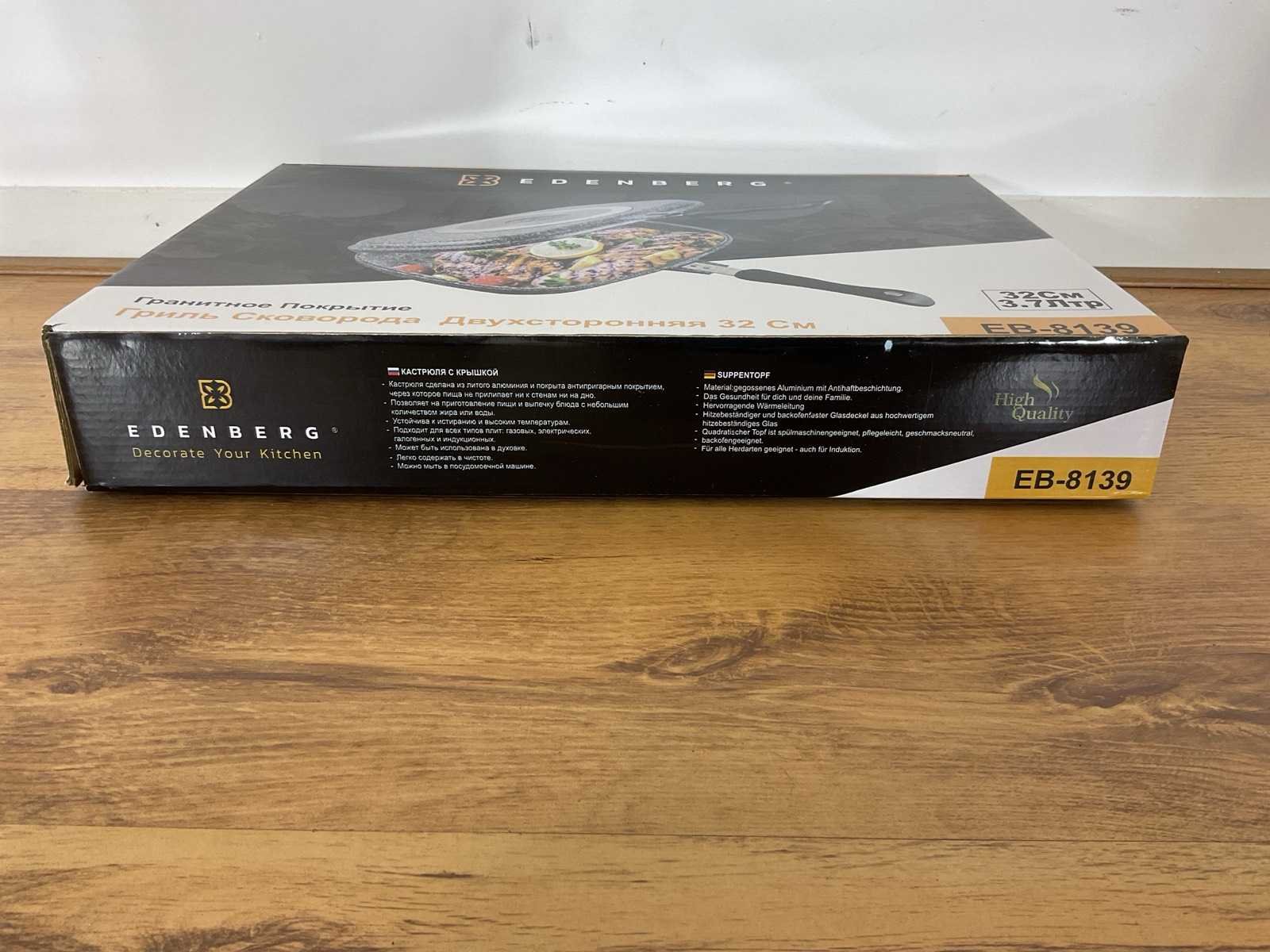 Geschikt voor alle warmtebronnen Inclusief deksel: Ja Kleur: Grijs Materiaal: Gietaluminium Cool touch handgreep: Ja Diameter: 32 cm Product breedte: 24 cm Product hoogte: 7 cm Product lengte: 32 cm Volume in liters: 3.7 Type anti-aanbaklaag: Keramisch Type handgreep: Ergonomisch Type pan bodem: Antiaanbaklaag Vaatwasserbestendig: Ja PFAS-vrij: ja Antiaanbaklaag: Ja Nieuw in doos Merk: Edenberg Model: EB-8139