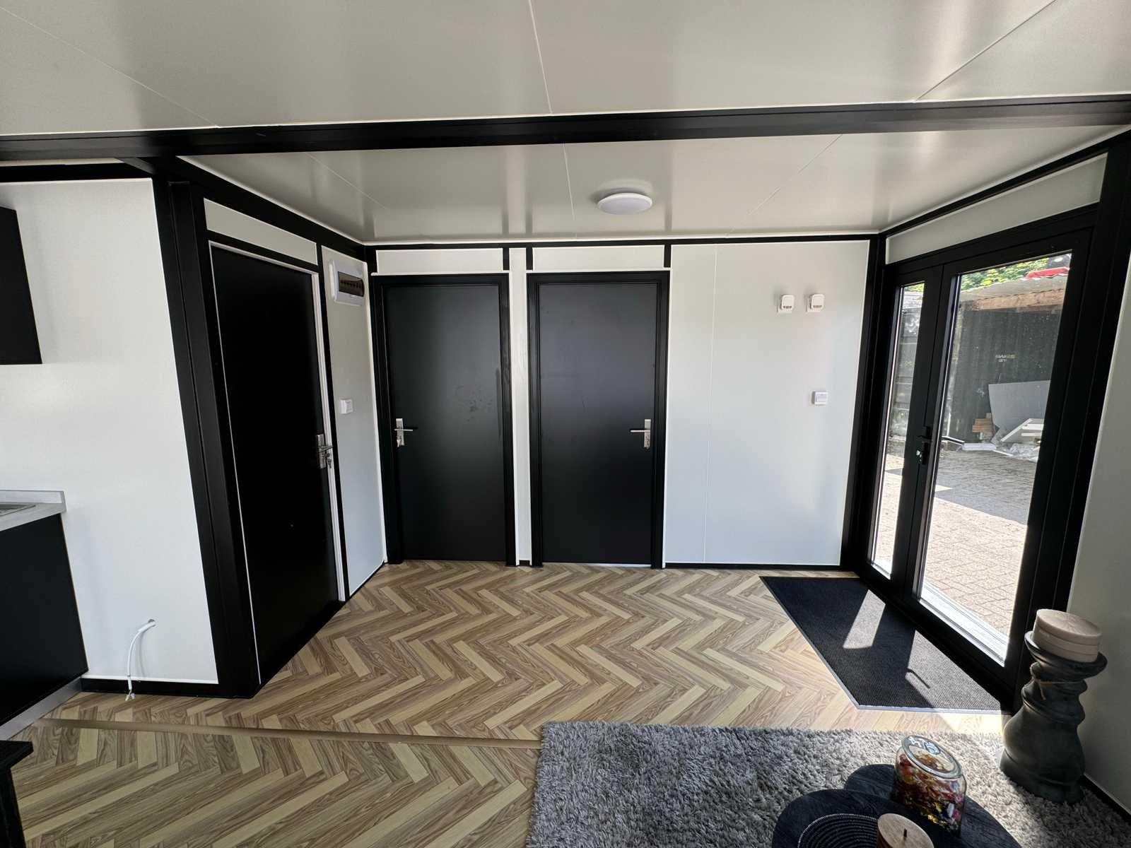 Voorzien van geïsoleerde wanden en dak; 2 slaapkamers; leefruimte met hoekkeuken; badkamer met douche, wc en wastafel; elke ruimte voorzien van verlichting en stopcontacten 230V; meterkast; PVC vloer; aluminium ramen en deuren; afsluitbaar; water, stroom en afvoer kan makkelijk aangesloten worden is voorbereid; ongebruikt en staat transport klaar (let op kleur is zoals op eerste foto houtkleur latjes) (let op meubilair niet inbegrepen) (let op dit model heeft geen glazenwand op de linker zijwand foto’s zijn ter illustratie, van binnen is hij verder exact hetzelfde) (transport afmetingen 590x220x248 cm, gewicht 3500 kg) Merk: Rhino Houses Model: 36,5 m2 Product type: 2 slaapkamers, badkamer en keuken Gewicht: 3500 Lengte: 5900 Breedte: 6200 Hoogte: 2480