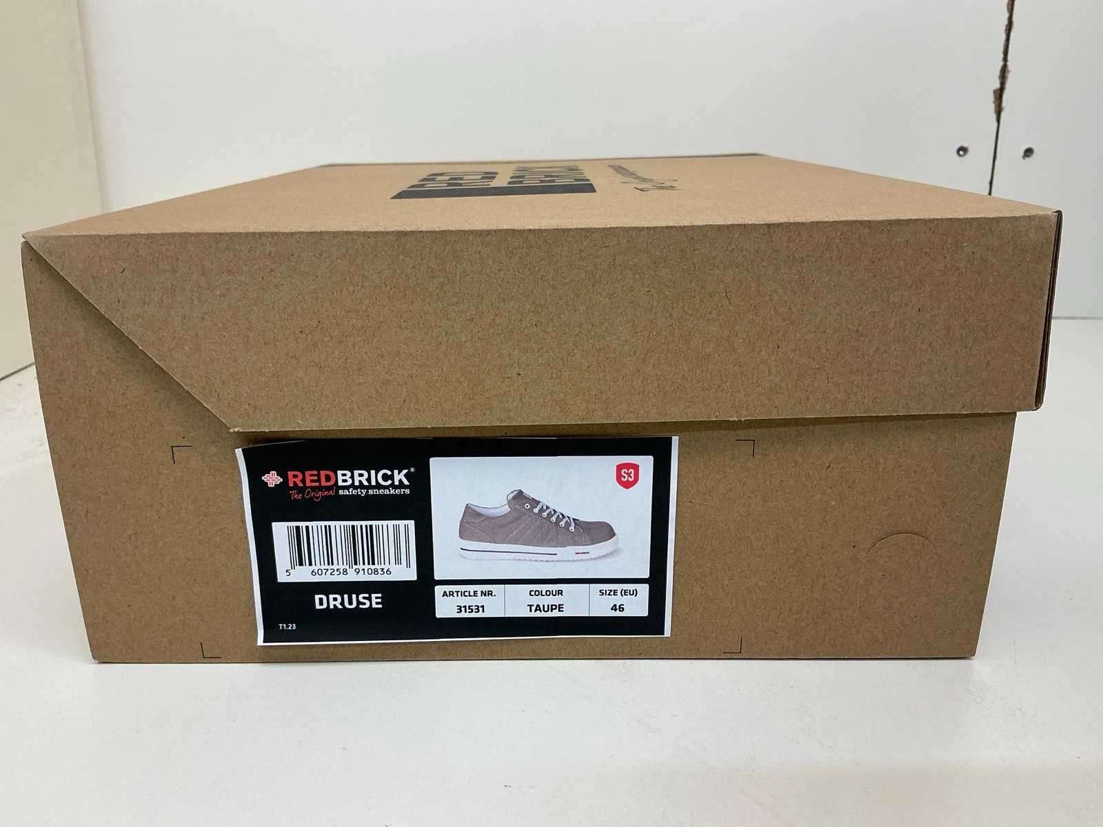 Let op: Deze kavel betreft safety sneakers nieuw in verpakking en bevat 10 paar schoenen per doos. Merk: Redbrick Model: Druse Product type: S3 Maat: 46
