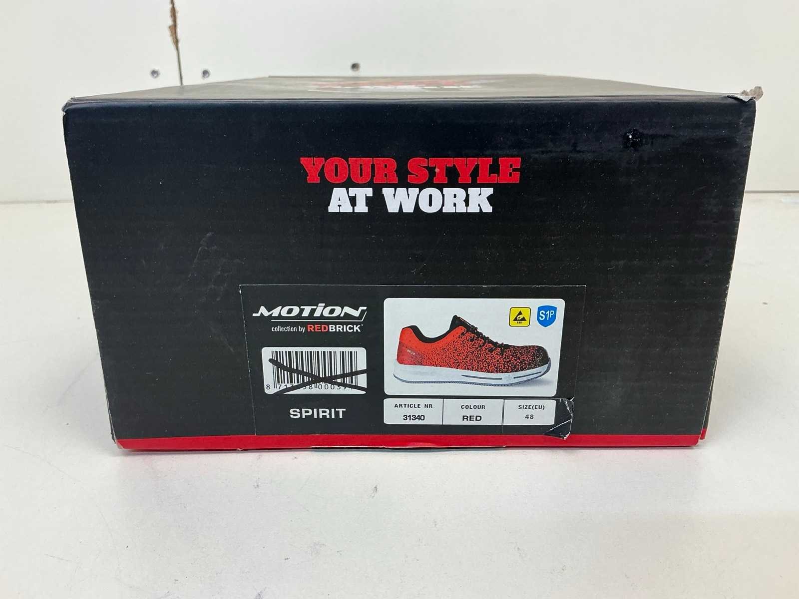 Let op: Deze kavel betreft werkschoenen nieuw in verpakking en bevat 10 paar schoenen per doos. Merk: Redbrick Type: Motion Spirit Model: S1 Maat: 48