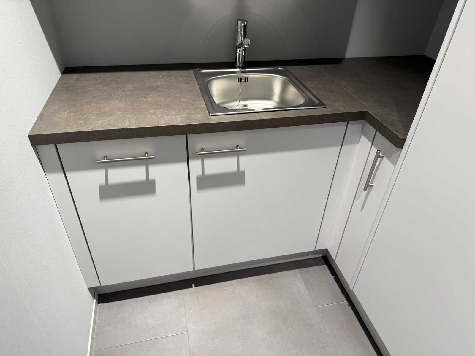 Met wasmachine Bauknecht F156260; reeds gedemonteerd en ingepakt op pallets. (afstapelen, omruilen of statiegeld per pallet); pallets zijn niet inbegrepen; statiegeld betalen bij afhalen, of pallets afstapelen; werkblad niet ingepakt op pallets (26-IMP-04637) Merk: Impuls Aanrechtblad: Terragrau kunststof Kleur: Space Grey