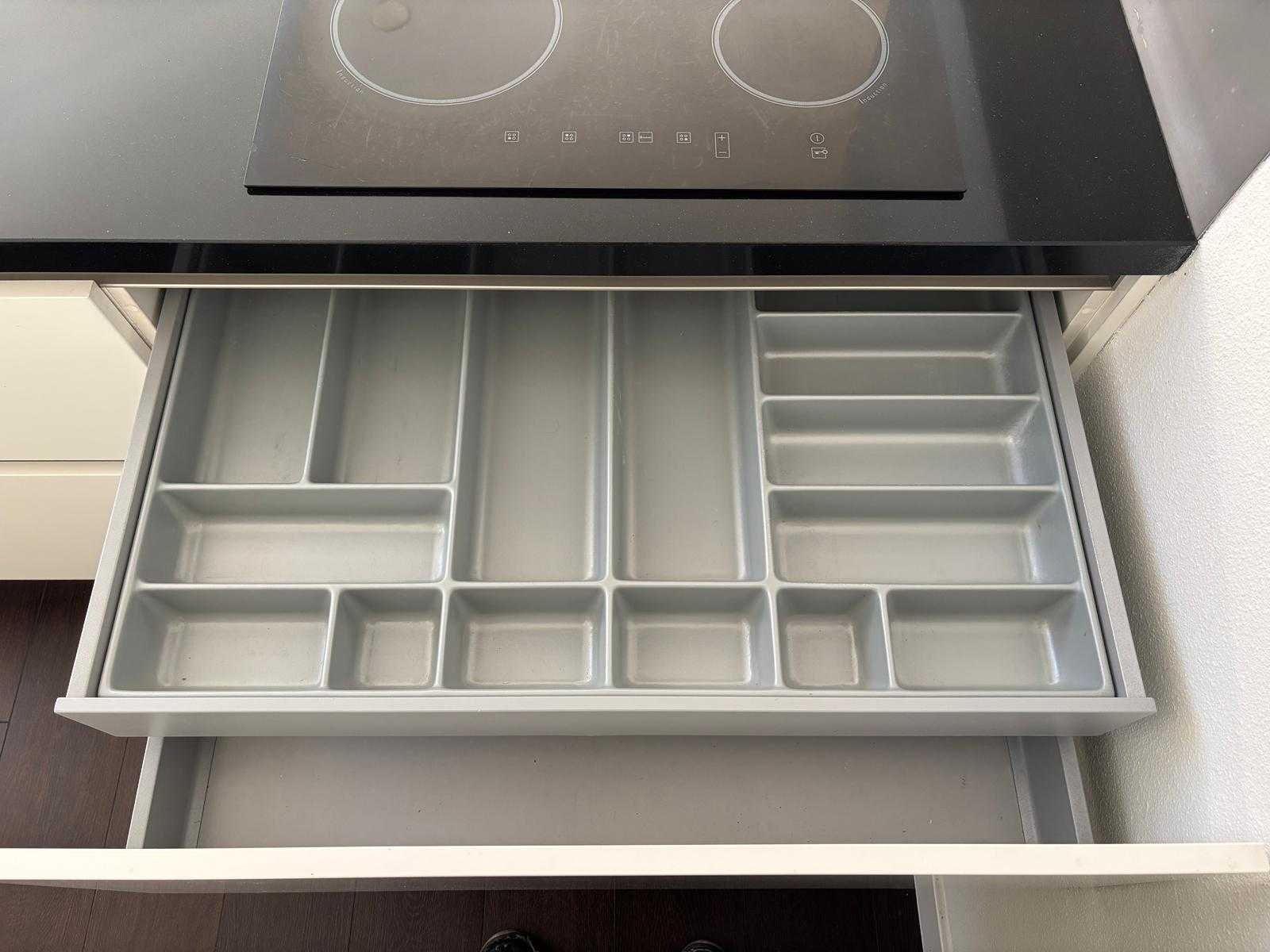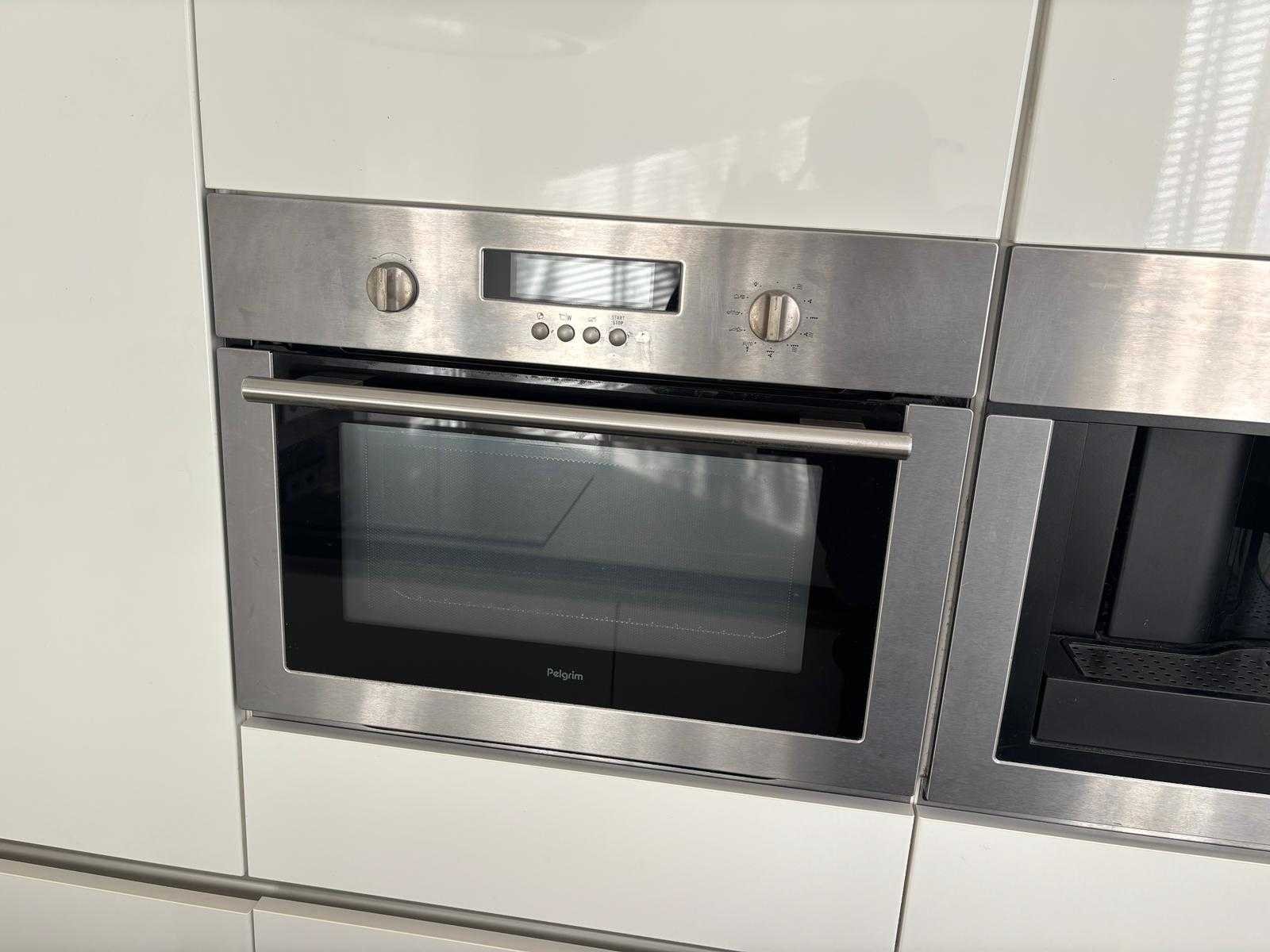Conditie: gebruikt; afmetingen kastenwand circa 261x60x230 cm; reeds gedemonteerd en ingepakt op pallets. (afstapelen, omruilen of statiegeld per pallet); pallets zijn niet inbegrepen; statiegeld betalen bij afhalen, of pallets afstapelen; werkblad niet ingepakt op pallets (26-2DE-03557); zonder afzuigkap Merk: Schüller Type keukenopstelling: Eiland Lengte: 184cm Breedte: 96cm Hoogte: 90cm Kraan: Grohe Gootsteen: Lavanto Aanrechtblad: Composiet Koffiezetapparaat: Pelgrim Fornuis: Hotpoint Ariston Koelkast: Zanker Softclose: true Oven: Pelgrim (magnetron functie defect) Vaatwasser: Siemens