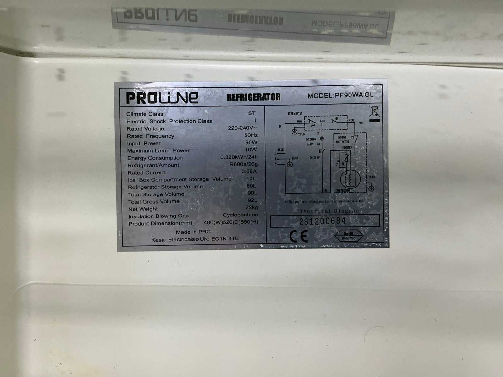 Beschadigd Merk: Proline Model: PF90WA GL Deur opent naar: Rechts Plaats vriesvak: Ja Vriesvak: Ja Vermogen: 90W Spanning: 240V Kleur: Wit Gewicht: 22kg Lengte: 51cm Breedte: 48cm Hoogte: 85cm