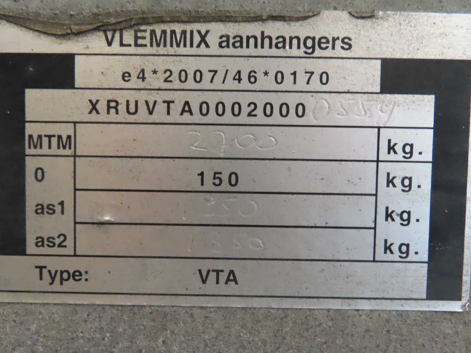 Merk: Vlemmix Type: VTA-27 Model: Machinetransporter Bouwjaar: 2020 Chassisnummer: XRUVTA00020000554 Aantal assen: 2 Laadbak afmeting l: 405cm Laadbak afmeting b: 180cm Ledig gewicht: 730kg Laadvermogen: 2700kg Datum eerste toelating: 2020-05-18 Kenteken: 60-WX-FP