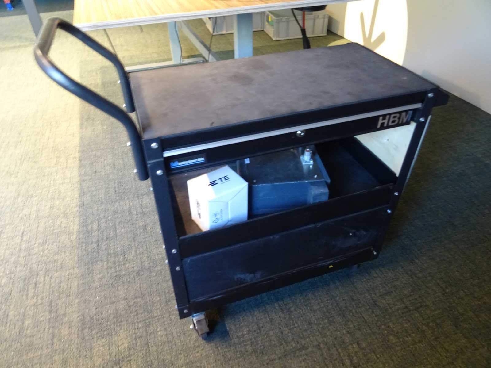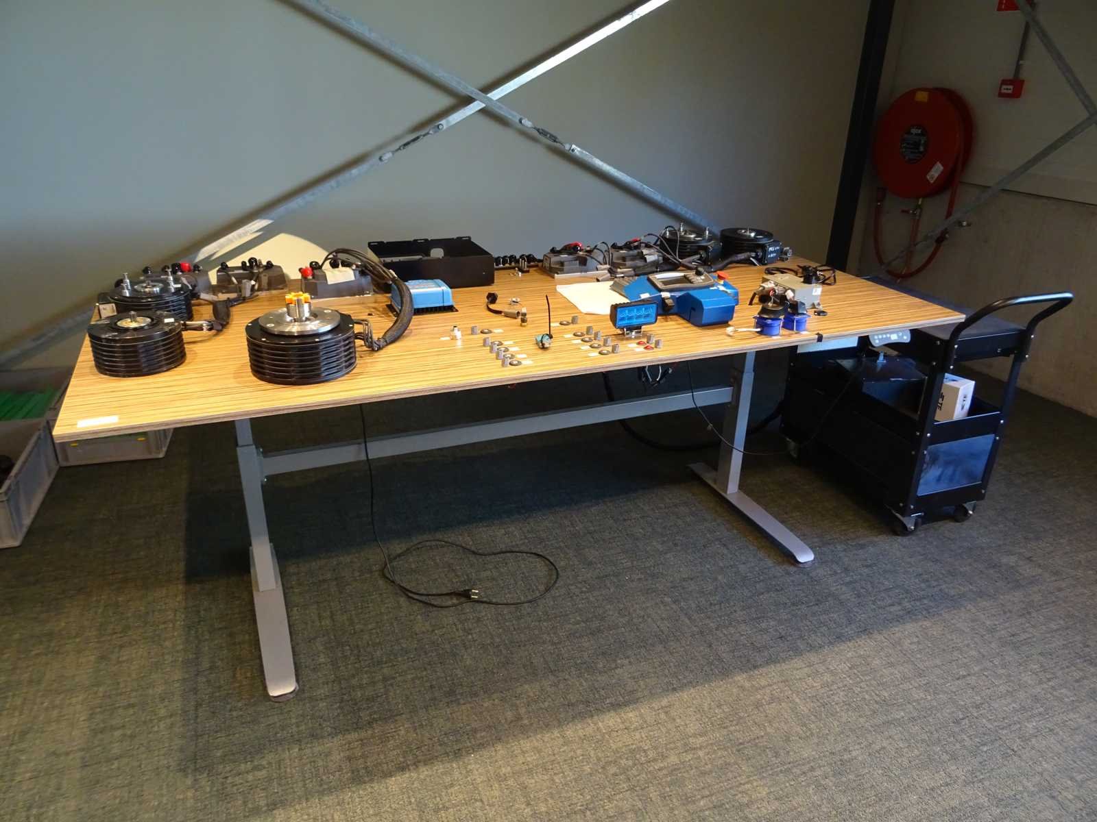 Opstelling gemonteerd op elektrisch verstelbaar bureau, met HBM werkkar