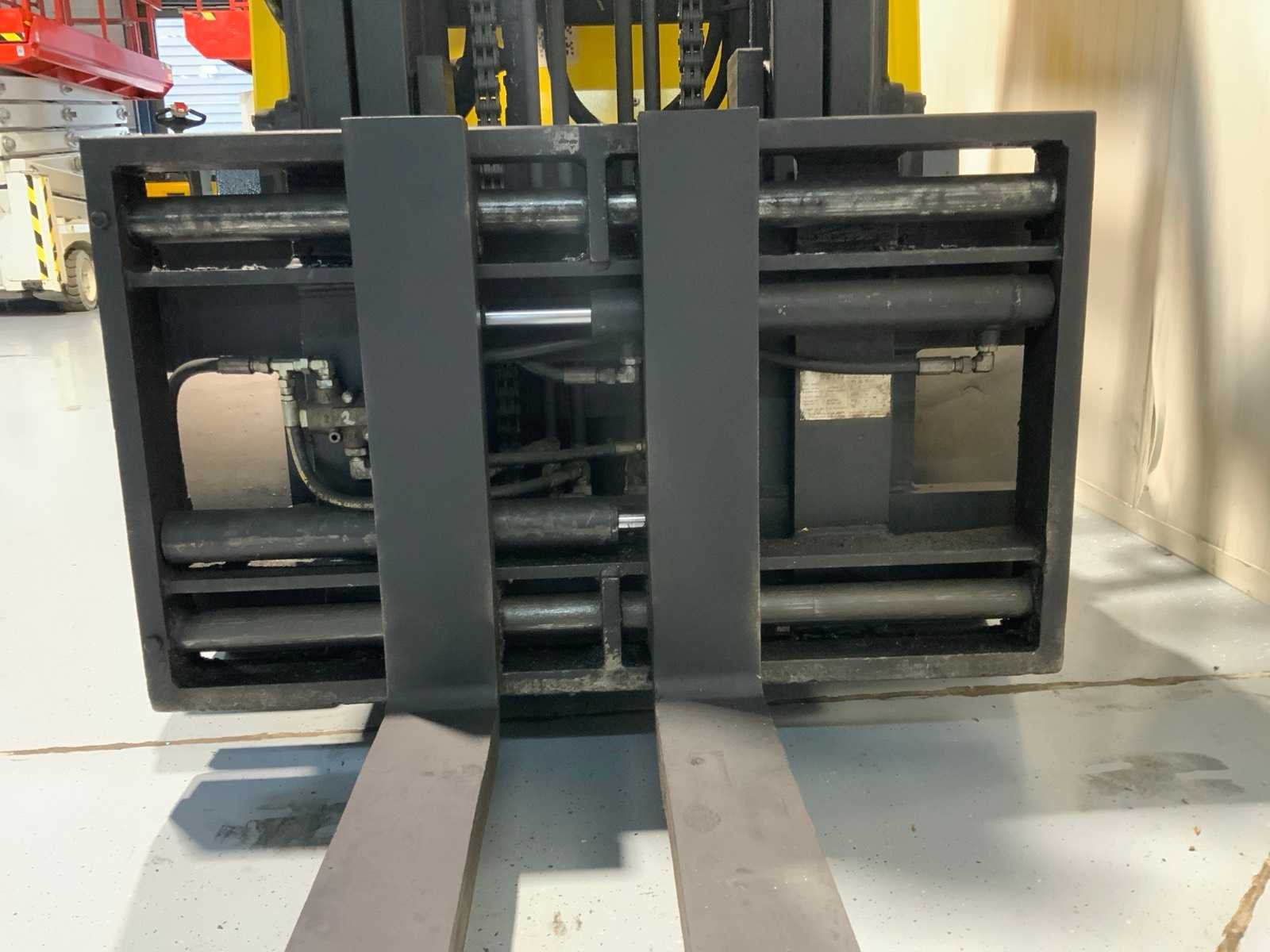 Vorkversteller, Accumulator, BlueSpot, duplex Merk: Hyster Type: E4.00XL Bouwjaar: 2011 Serienummer: E098N02735J Brandstof: Elektrisch Soort band: Volrubber banden Aantal wielen: 4 Side-shift: true Duplex mast: true Eigen gewicht: 7460kg Hefvermogen: 4000kg Lepellengte: 1200mm Max. hefhoogte: 4300mm Hefhoogte: 4300mm Vol rubber banden: true Minimale doorrijhoogte: 2750mm Totale afmeting L: 3800mm Totale afmeting Breedte: 1200mm Totale afmeting Hoogte: 2750mm