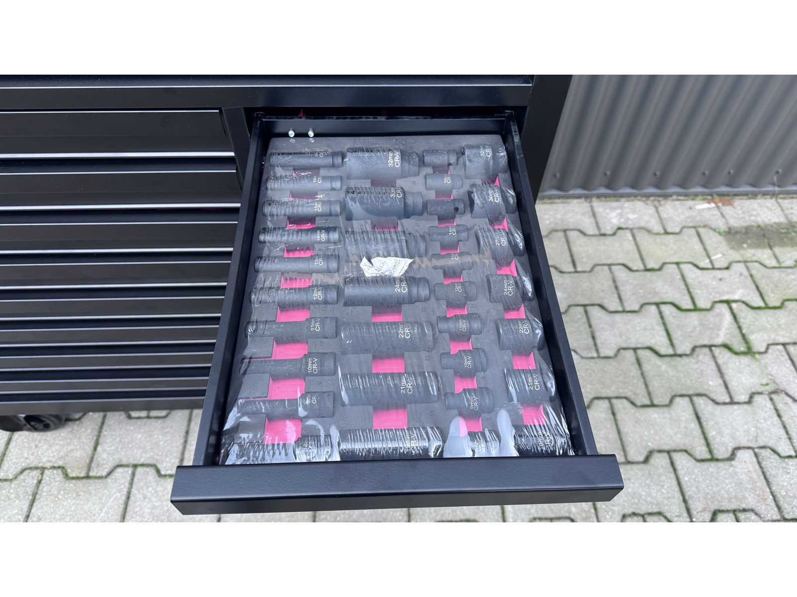 Voorzien van houten blad, gevuld met diverse gereedschappen. Merk: Eversteel Model: 14/11 Materiaal: Metaal & hout