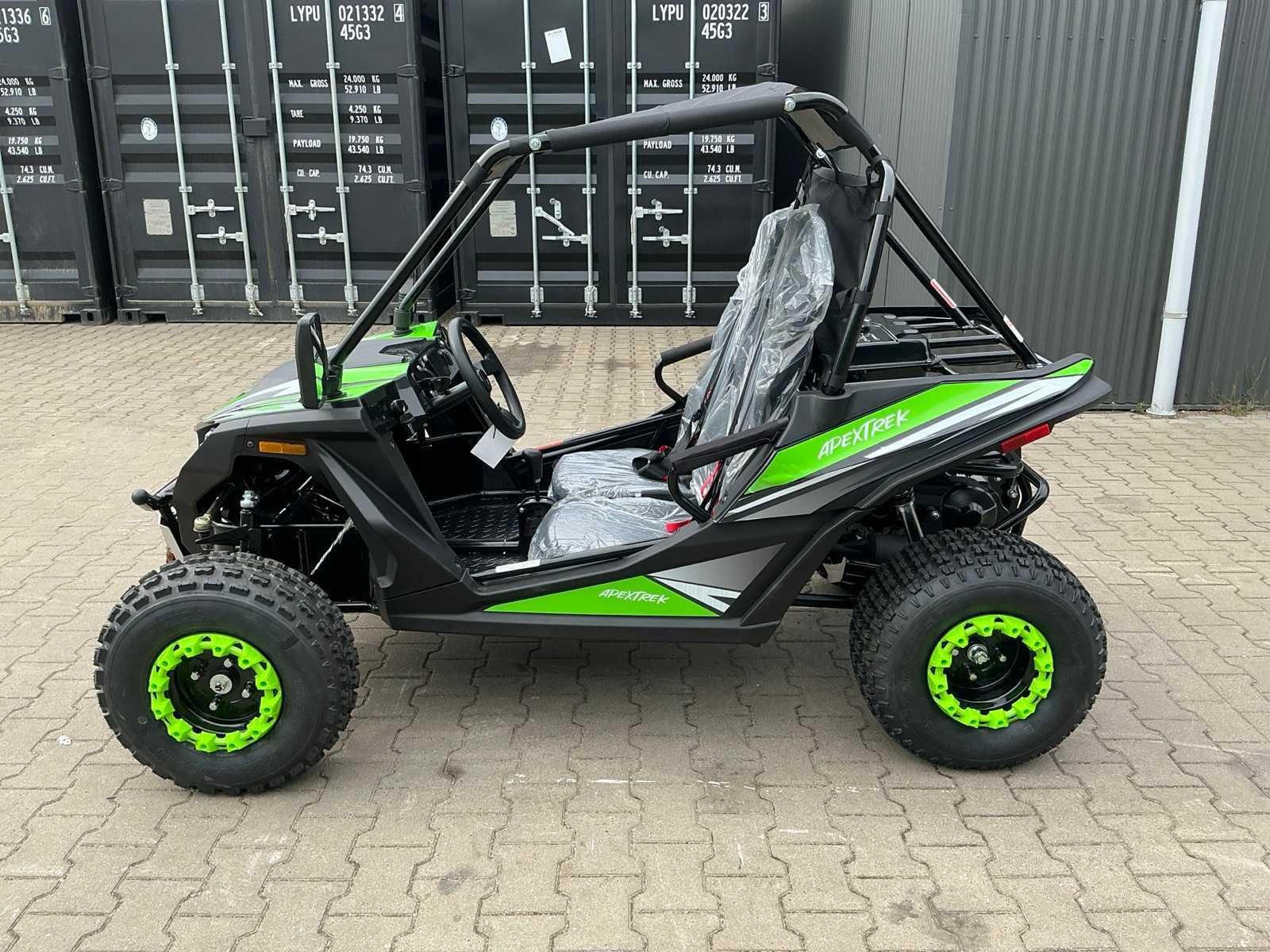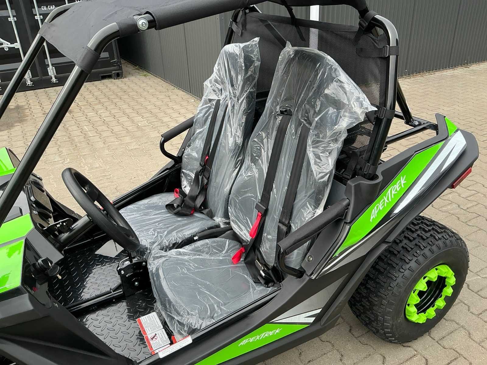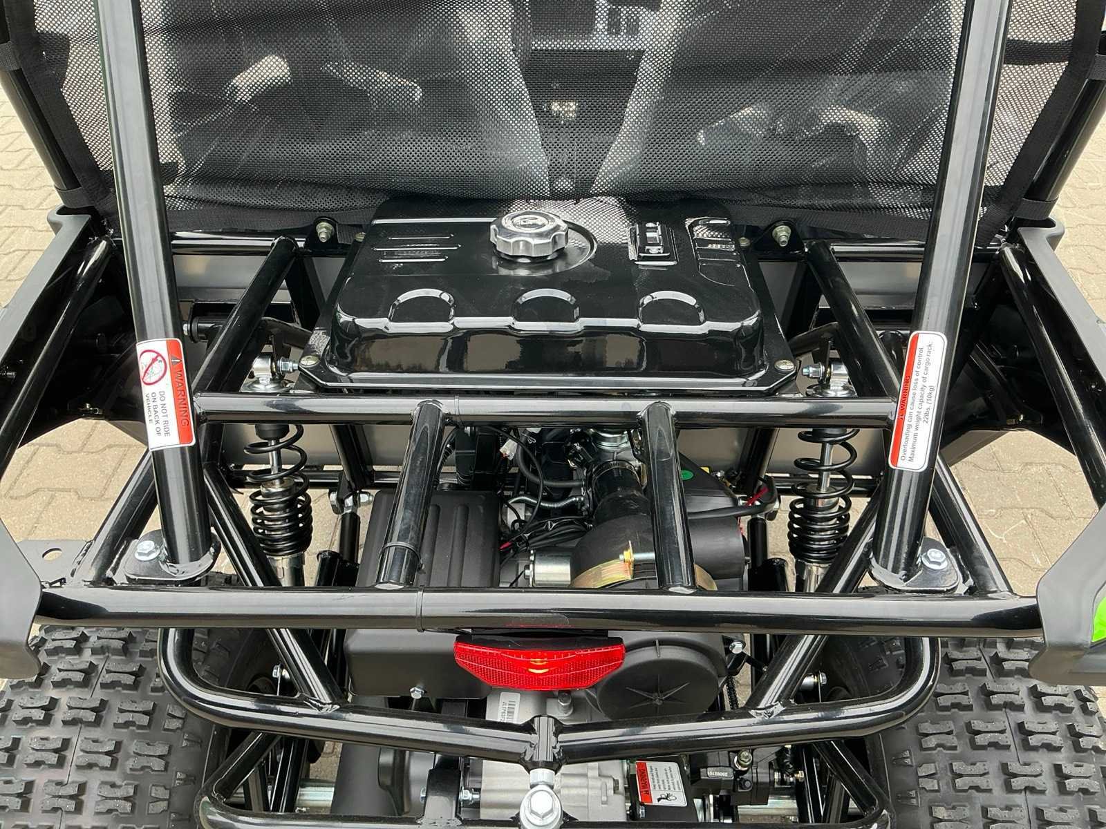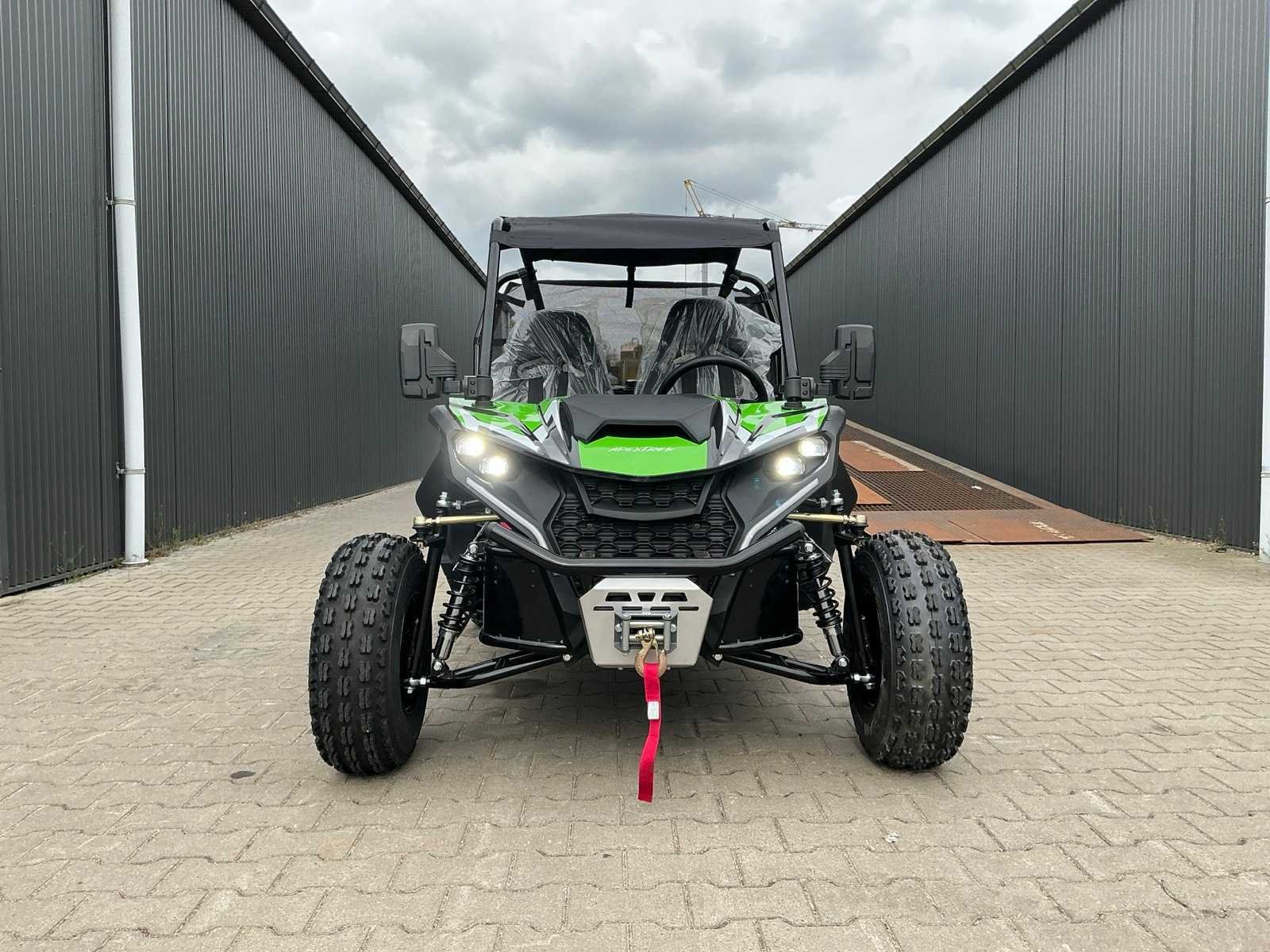 Motortype: 180 cc JL1P63F-2 Motor: Viertakt, luchtgekoeld Motorvermogen: 8,7 kW bij 7000 ± 500 tpm Maximaal koppel: 12,8 Nm bij 5500 ± 500 tpm Ontsteking: CDI Startmethode: Elektrische start Transmissie: Vooruit – neutraal – achteruit Voorvering: Hydraulisch, onafhankelijk dubbel schokdempersysteem Achtervering: Hydraulisch, onafhankelijk dubbel schokdempersysteem Voorrem: Hydraulische schijfrem Achterrem: Hydraulische schijfrem Voorbanden: 22×7-10 Achterbanden: 22×10-10 Zithoogte: 504 mm Wielbasis: 1656 mm Bodemvrijheid: 112 mm Accu: 12V 9Ah Brandstofcapaciteit: 15 liter Maximale belasting: 300 kg Totale afmetingen: 2230 × 1420 × 1460 mm Maximale snelheid: 50 km/u Velgen: Staal Voor- en achterverlichting: LED Richtingaanwijzers: LED Snelheidsmeter: 8-inch LCD-dashboard Merk: HPM Model: GK020 Product type: Cross buggy / Quad Aantal zitplaatsen: 2 Transmissie: CVT / Automatic Bouwjaar: 2026 Cilinderinhoud: 180cc Brandstof: Benzine Kleur omschrijving: Groen (Green) Gewicht: 256kg Lengte: 223cm