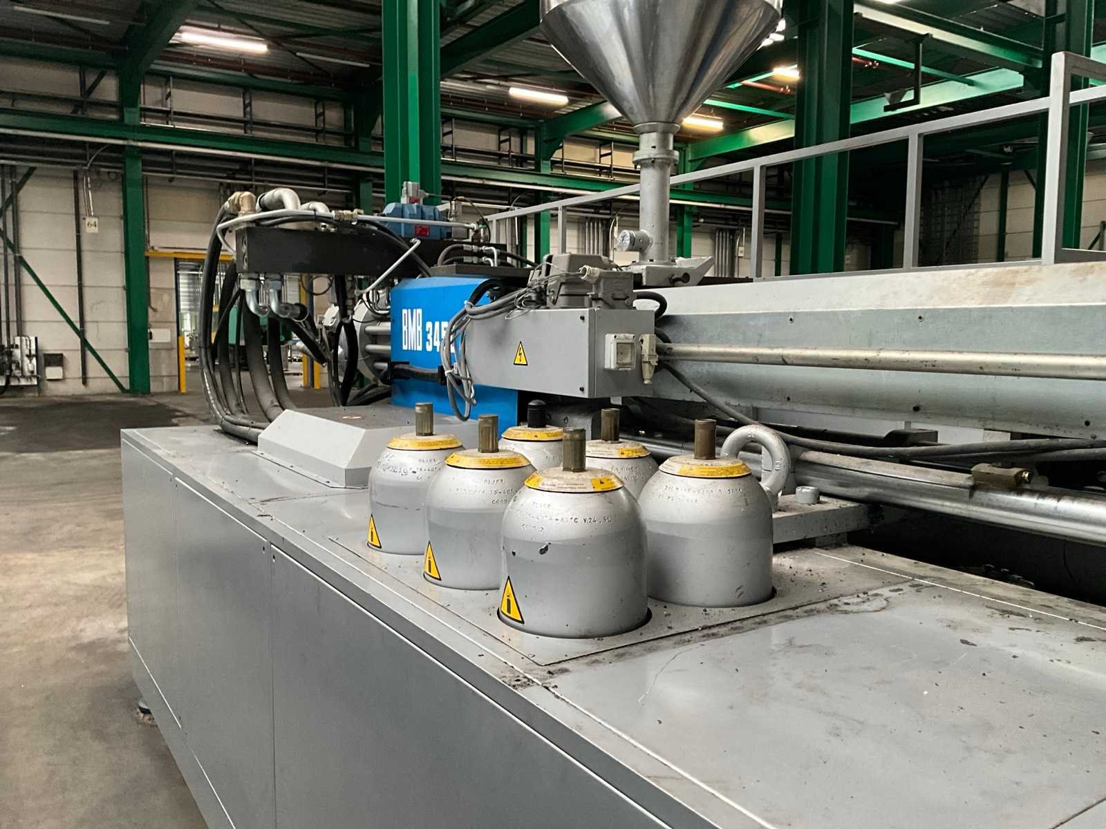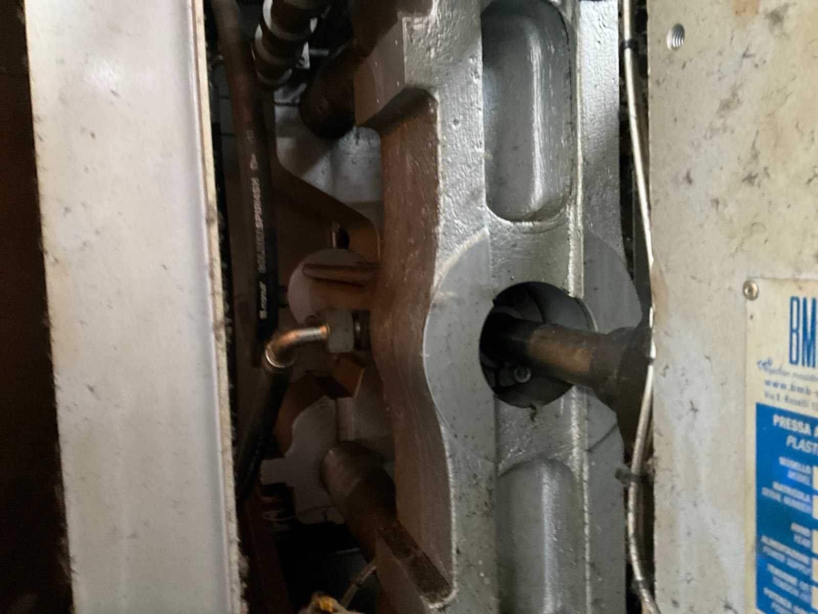 Afstand tussen de holmen 710x630 mm, gat centreerring vaste plaat Diameter 160 mm, minimale inbouw hoogte 250 mm, maximale open loopweg 1450 mm, kerntrek 2, documentatie, Machine is in 2014 gedemonteerd, gereviseerd (Italië) en opnieuw in bedrijf gesteld, voorzien van hydraulische schroef aandrijving, documentatie, Let op! afhalen op afspraak Merk: BMB Type: KW38PI/3450 Bouwjaar: 2001 Serienummer: 1090091 Schroefdiameter: 75mm Injectievolume: 1725cm³ Sluitkracht: 3800kN Matrijs afm. b: 1025mm Matrijs afm. h: 935mm Digitale besturing: true Afgelezen urenstand: 34787 Aansluiting: 400V Machinegewicht: 17700kg Totale afmeting L: 8500mm Totale afmeting Breedte: 2200mm Totale afmeting Hoogte: 3000mm