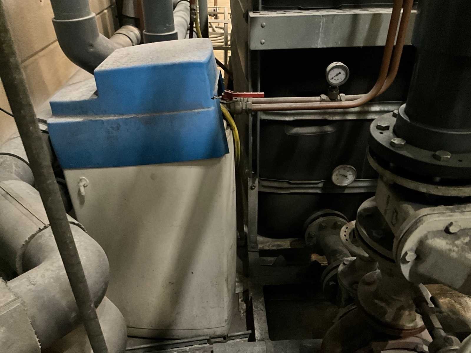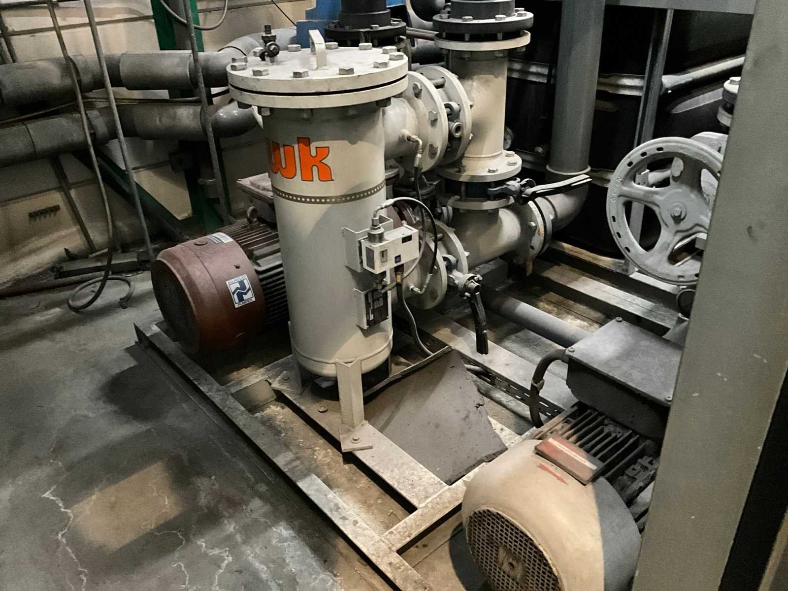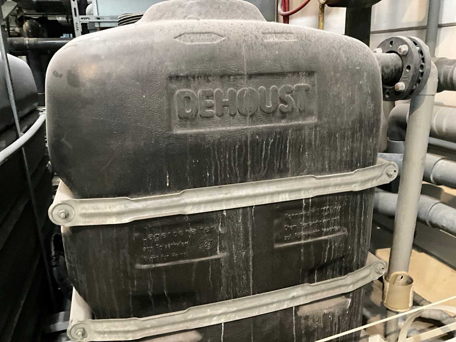 Bestaande uit 1x koelwater pompunit, voorzien van 2x 3000 ltr koelwater tanks, 2x circulatie pomp, besturingskast, vloeroppervlakte 3700x2400 mm, 1x condensor op het dak, gemonteerd op stalen frame, voorzien van 12x ventilator, condensor afmeting (LxWxH) 12300x2400x3000 mm, water verneveling, Let op! afhalen op afspraak, leidingwerk niet inbegrepen, koudemiddel is reeds afgetapt Merk: GWK Aansluiting: 400V Vermogen: 57kW Serienummer: 221360-07-01 Bouwjaar: 2007