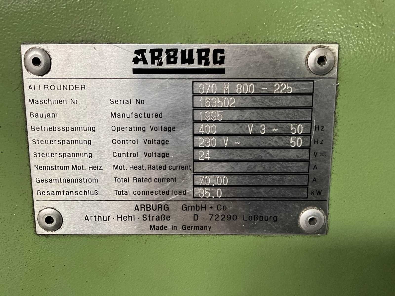 Merk: Arburg Type: 370 M 800-225 Bouwjaar: 1995 Serienummer: 163502 Aansluiting: 380V Totale afmeting L: 450mm Totale afmeting Breedte: 600mm Totale afmeting Hoogte: 1800mm