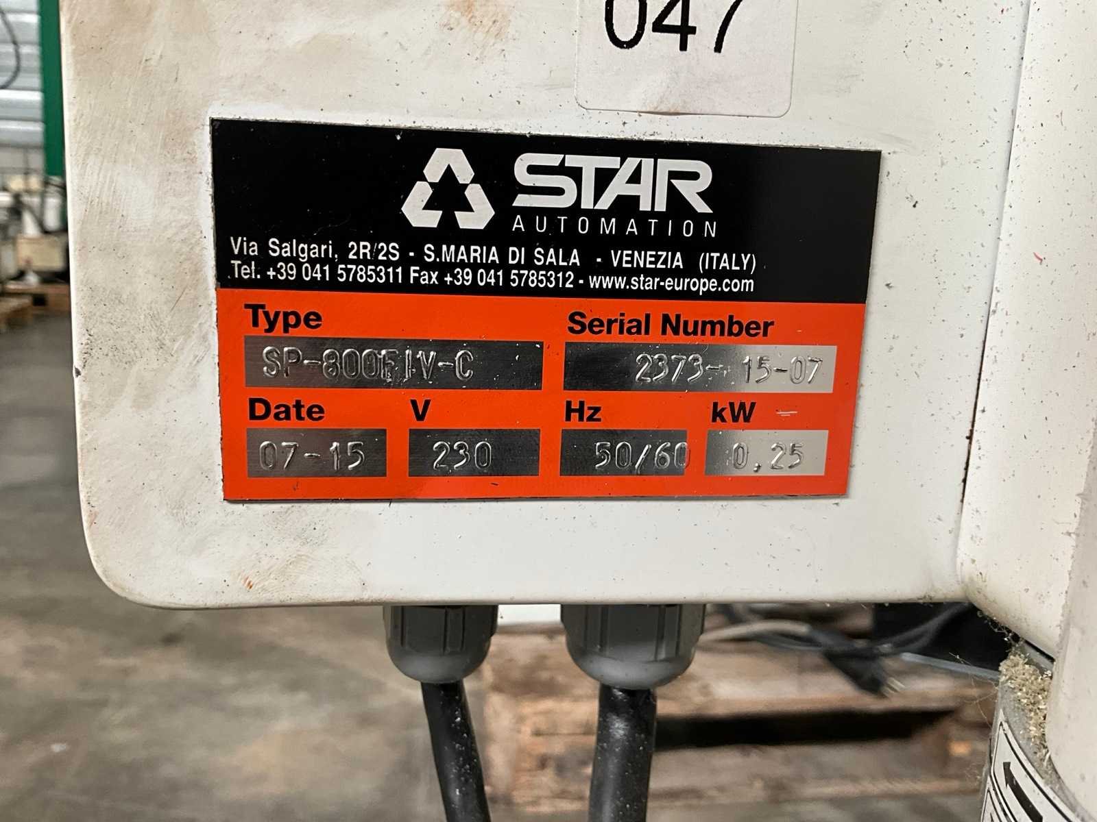 Voorzien van schakelkast en afstandsbediening Merk: Star Type: SP-800F IV C Bouwjaar: 2015 Serienummer: 2373-15-07 Aansluiting: 230V Totale afmeting L: 800mm Totale afmeting Breedte: 300mm Totale afmeting Hoogte: 1300mm