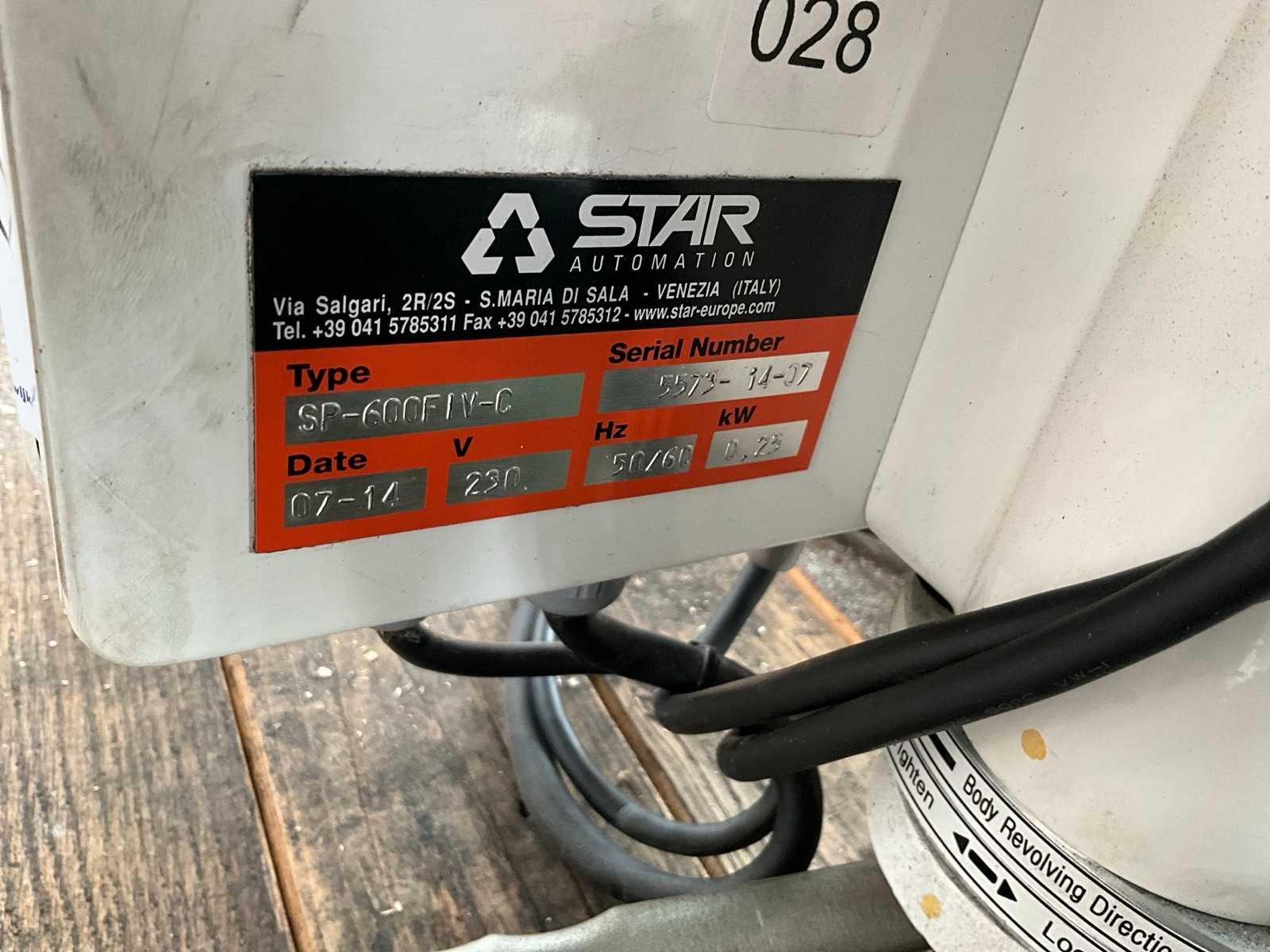Voorzien van schakelkast en afstandsbediening Merk: Star Type: SP-600F IV C Bouwjaar: 2014 Serienummer: 5573-14-07 Aansluiting: 230V Totale afmeting L: 800mm Totale afmeting Breedte: 300mm Totale afmeting Hoogte: 1300mm