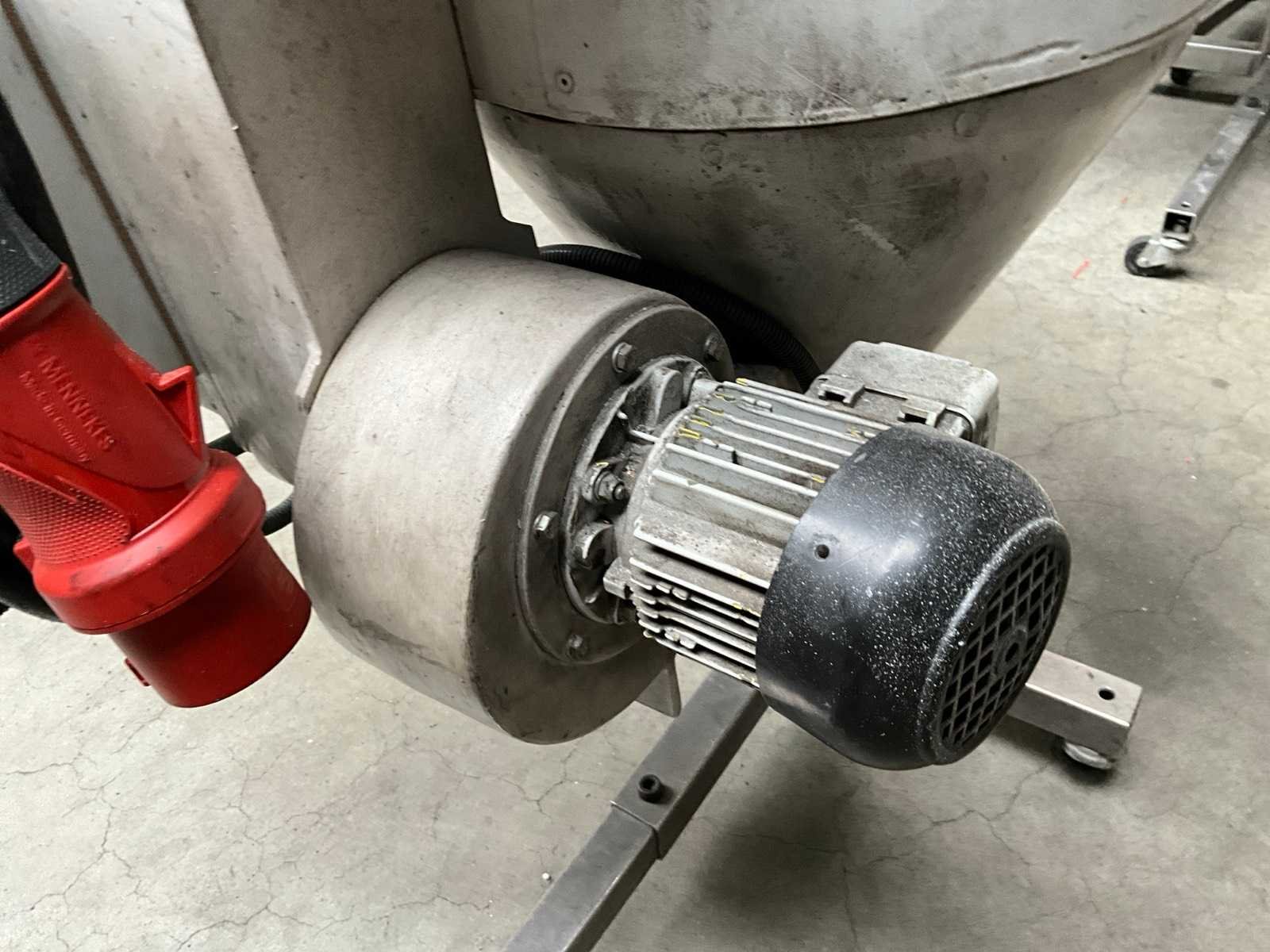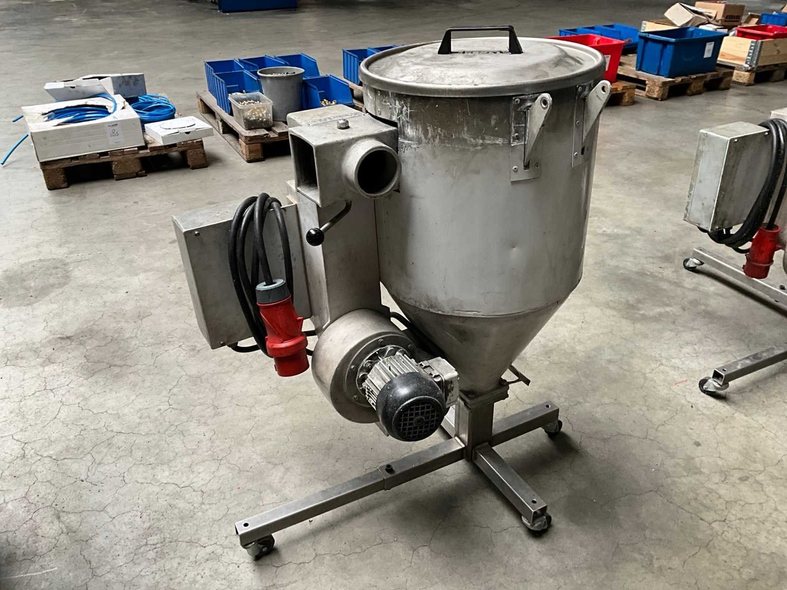 Voorzien van mobiel onderstel, trechter diameter 41 cm Merk: Stougaard Argos Type: CS-1 Bouwjaar: 1998 Vermogen: 3kW Aansluiting: 380V Totale afmeting L: 700mm Totale afmeting Breedte: 700mm Totale afmeting Hoogte: 1000mm