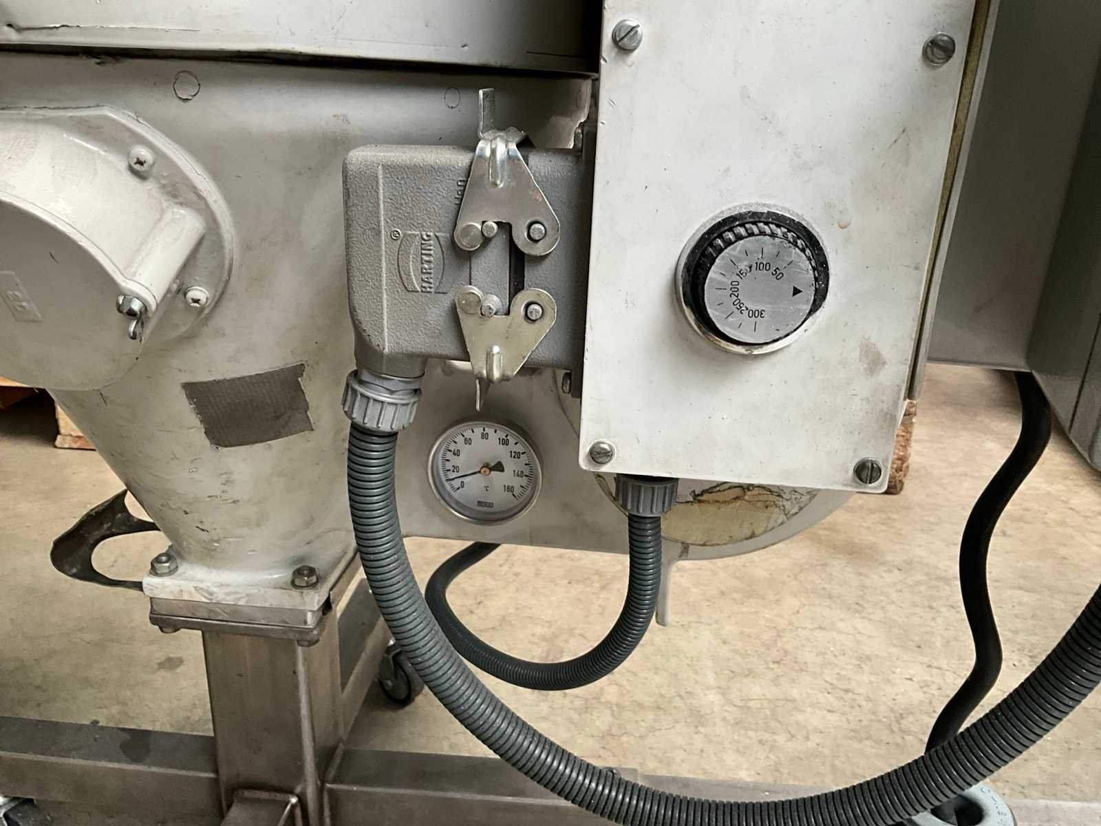 Voorzien van mobiel onderstel Merk: Stougaard Argos Type: CS-1 Bouwjaar: 1998 Serienummer: 12/98 Vermogen: 3kW Aansluiting: 380V Totale afmeting L: 700mm Totale afmeting Breedte: 700mm Totale afmeting Hoogte: 1800mm