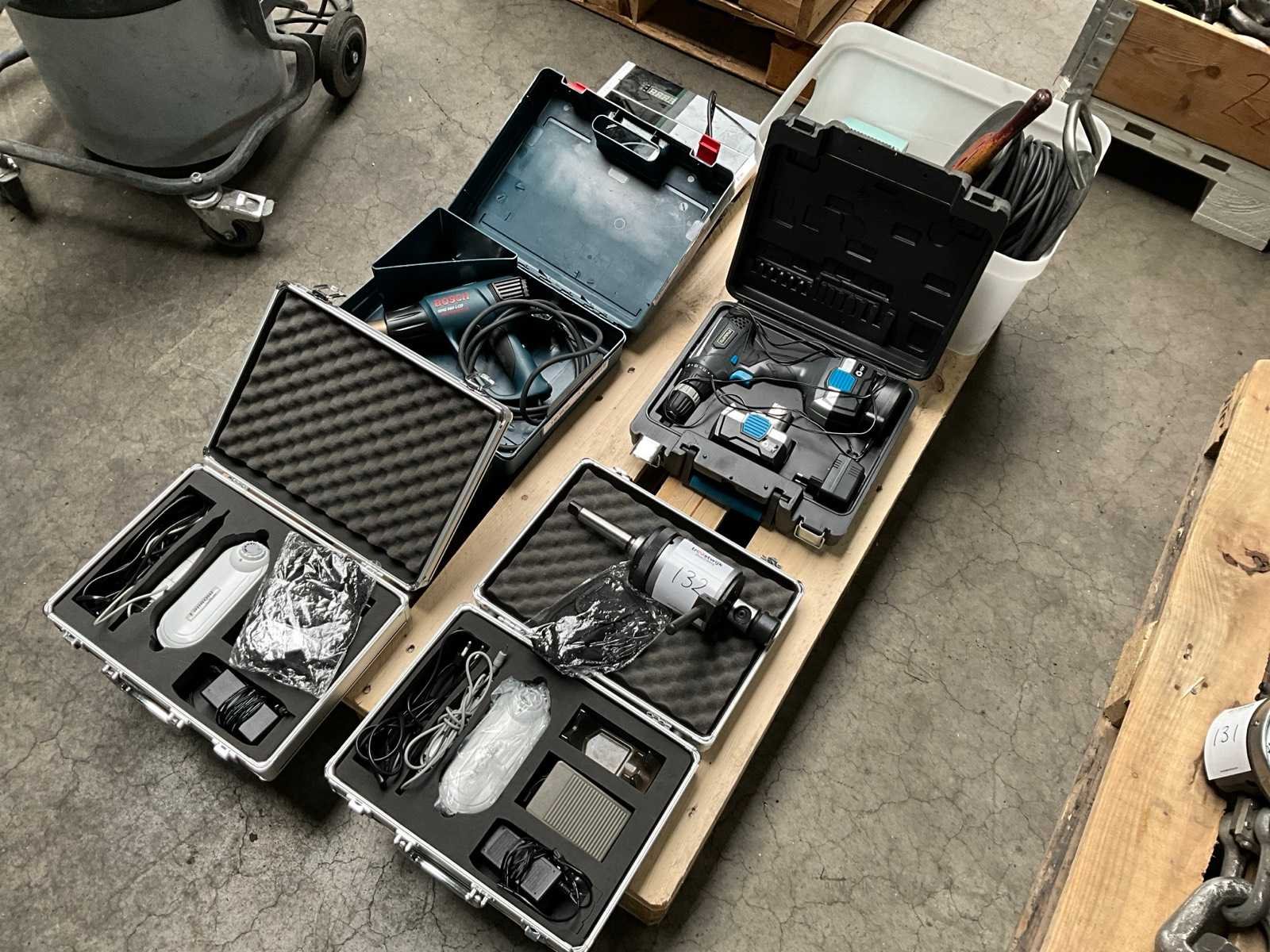 2x Set MINI MONTOR mobile 1 polijst- en slijp systeem, 1x Bosch heteluchtpistool, 1x Gamma boormachine, draad tapper, diverse gereedschappen