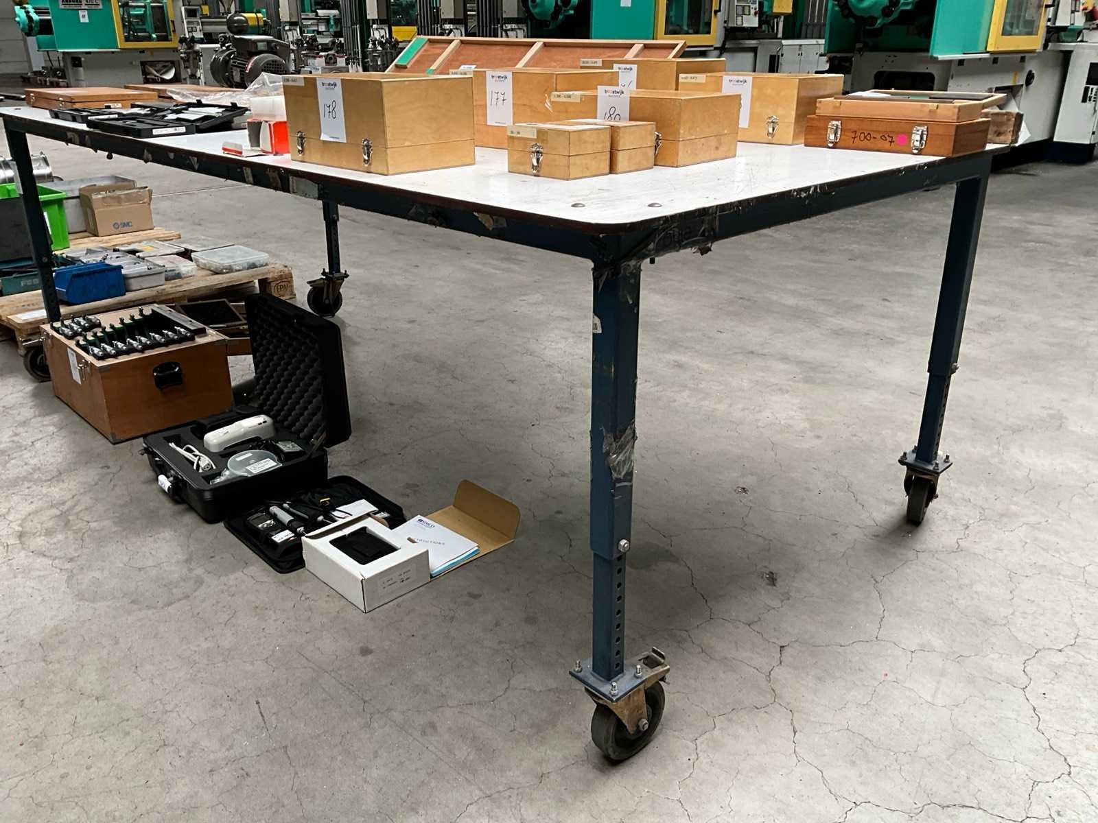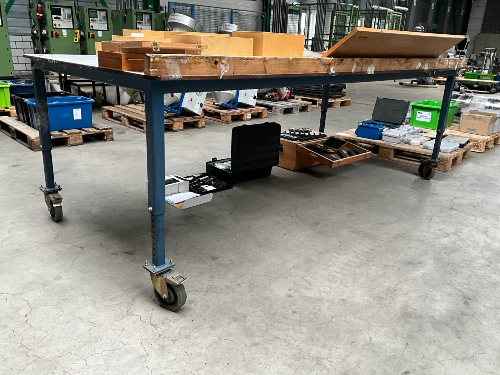 Stalen onderstel voorzien van houten werkblad, in hoogte verstelbaar Breedte: 1300mm Lengte: 2760mm Hoogte: 940mm