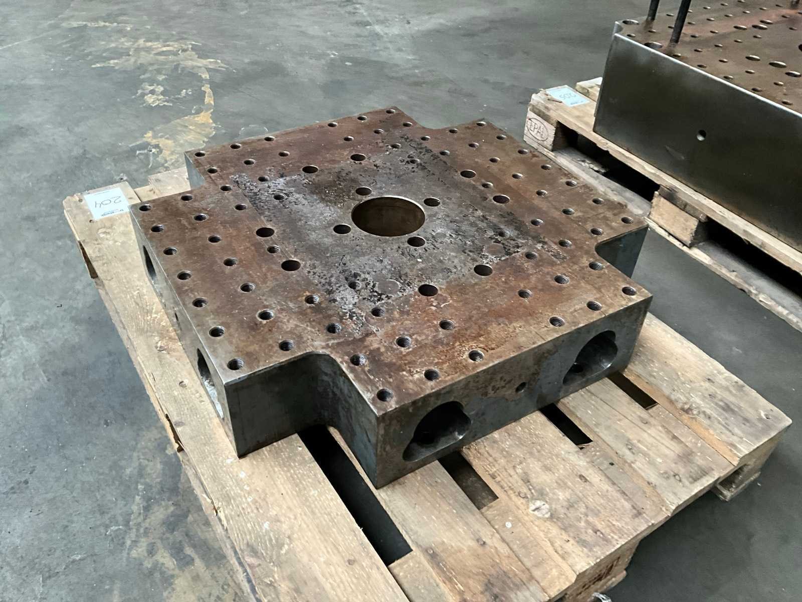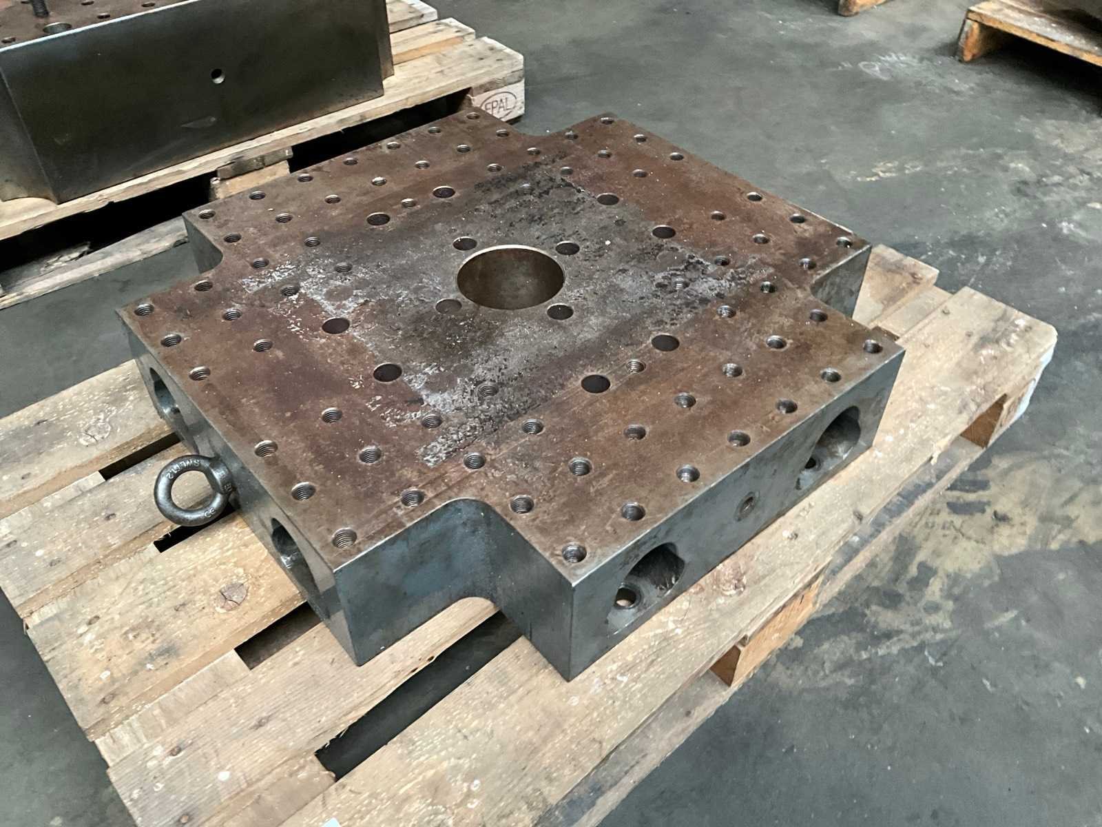 Ten behoeve van een spuitgietmachine, gat diameter 125 mm Afmeting l: 750mm Afmeting b: 750mm Afmeting h: 150mm
