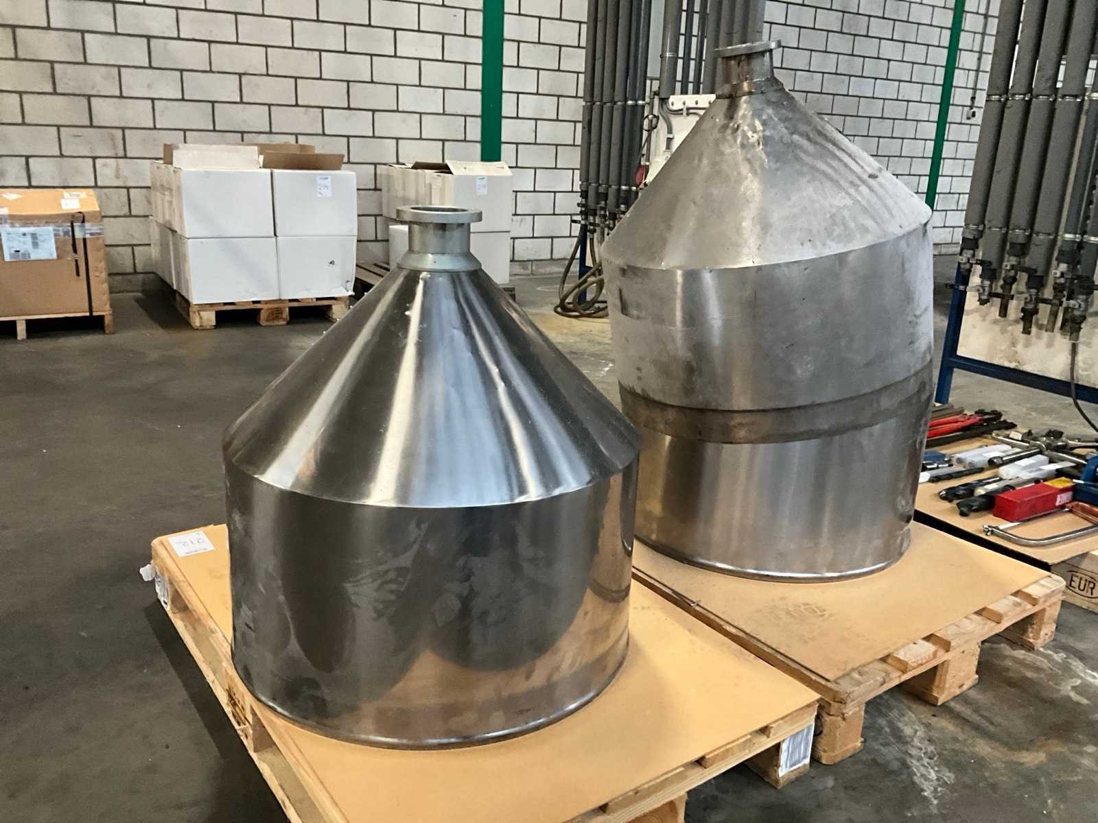 Staal; aansluit diameter circa 90 mm; vulopening circa 700 mm; voorzien van kijkglas; totale hoogte circa 760 mm; op 2 pallets