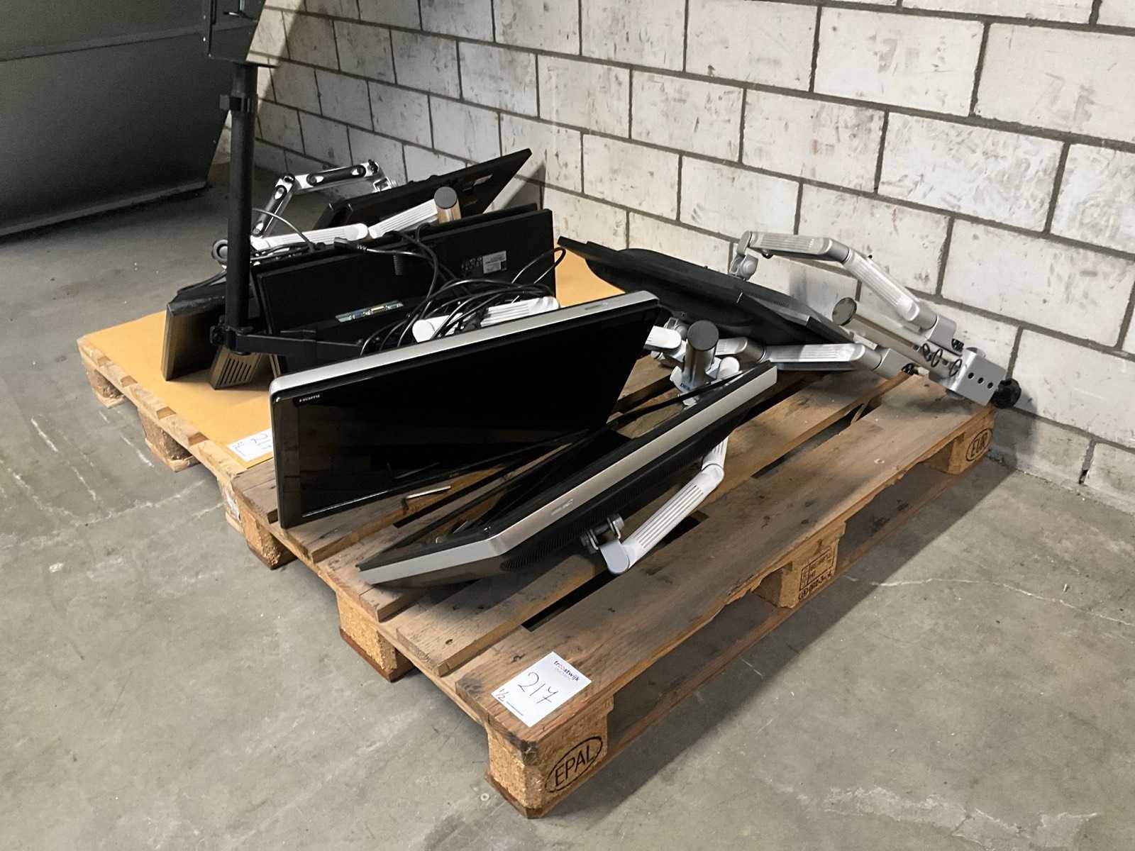 Diverse schermdiagonaal waaronder maximaal 24”; waaronder HDMI; inclusief 5 bevestiging beugels voor twee monitors; op 2 pallets Merk: HP / Acer
